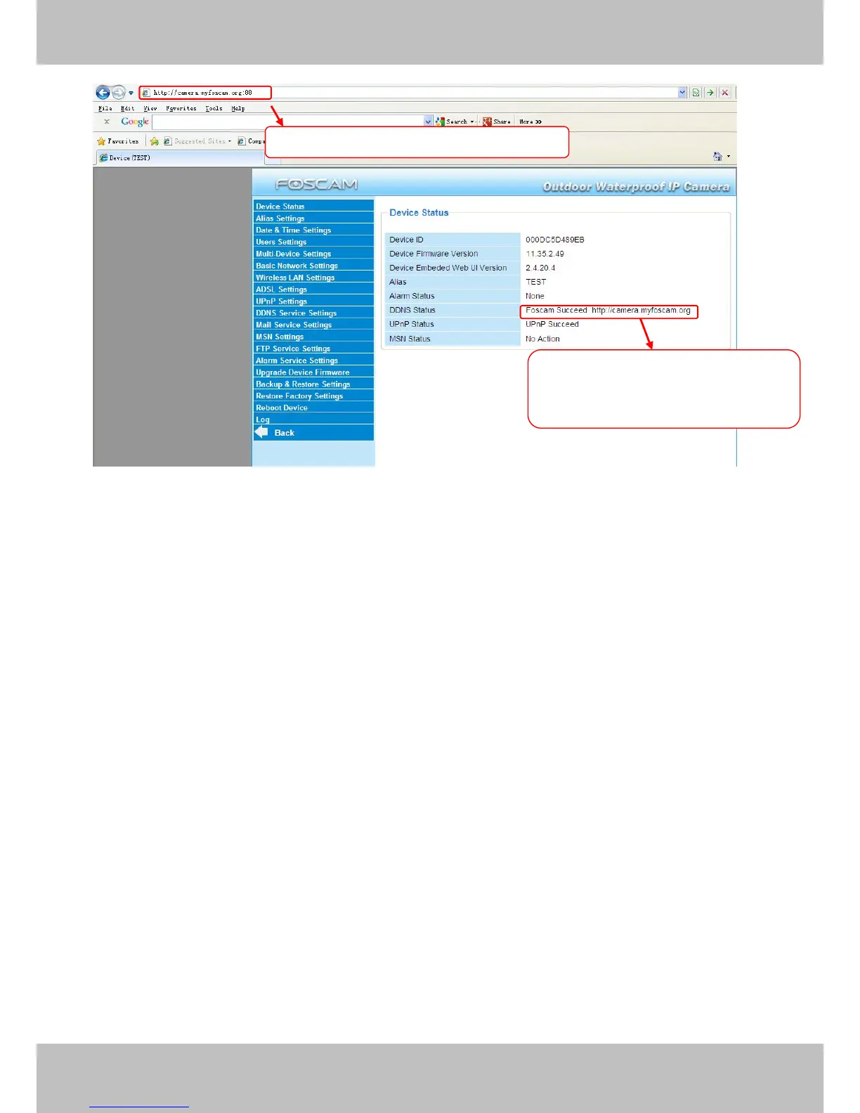 NOTE: Here the Host must be entered as the second camera’s DDNS domain name, not its LAN