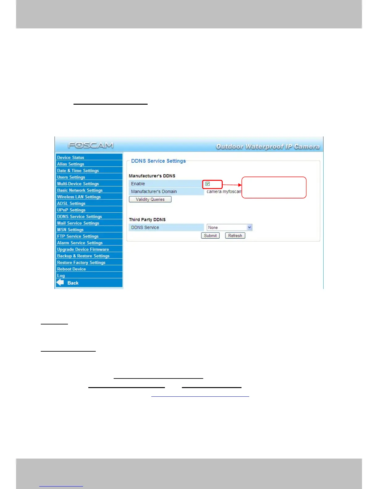 Enable: Open or close the FOSCAM domain name. The default status of FOSCAM domain