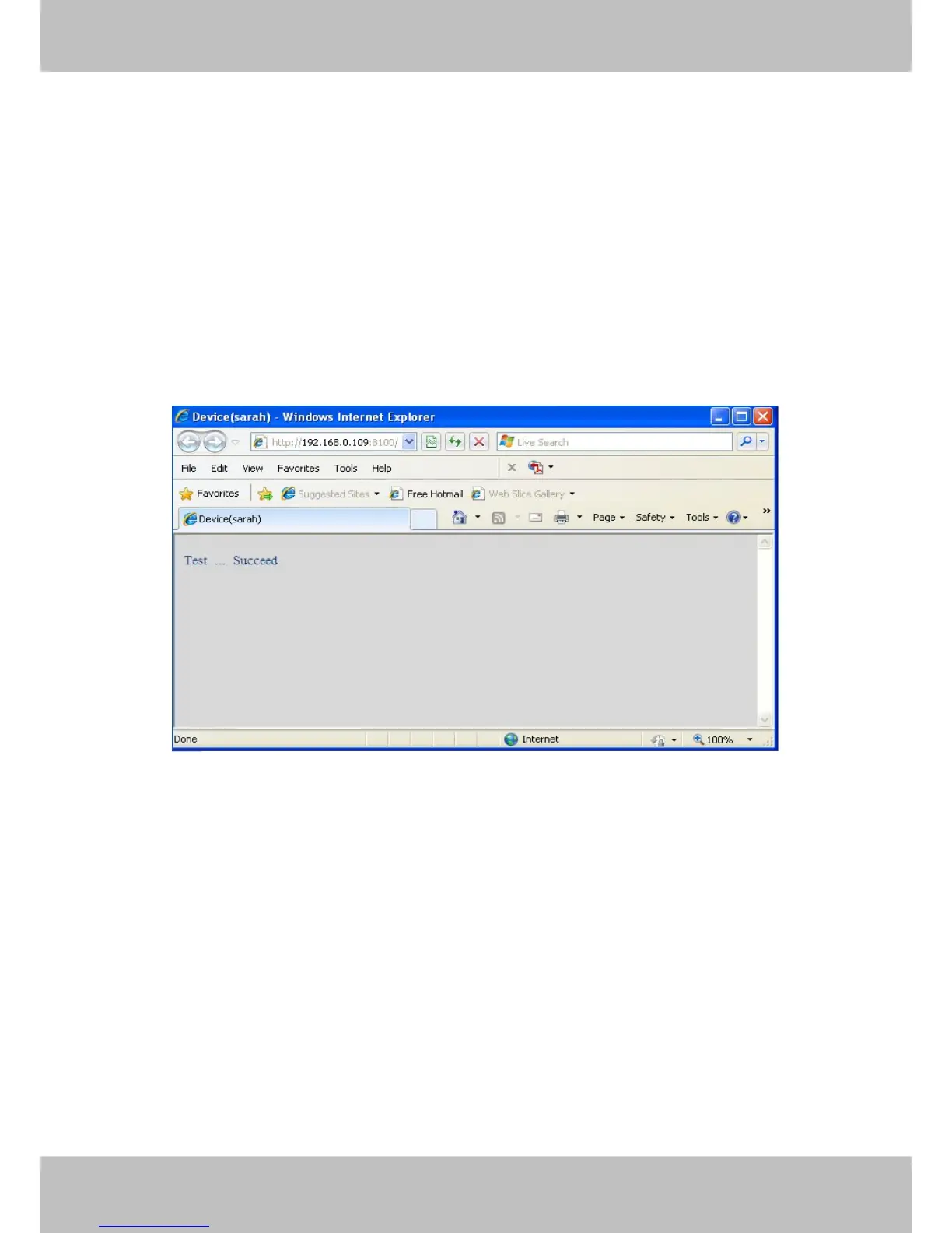 Click Submit to save these settings. Click Test, the following screen displays if successful.