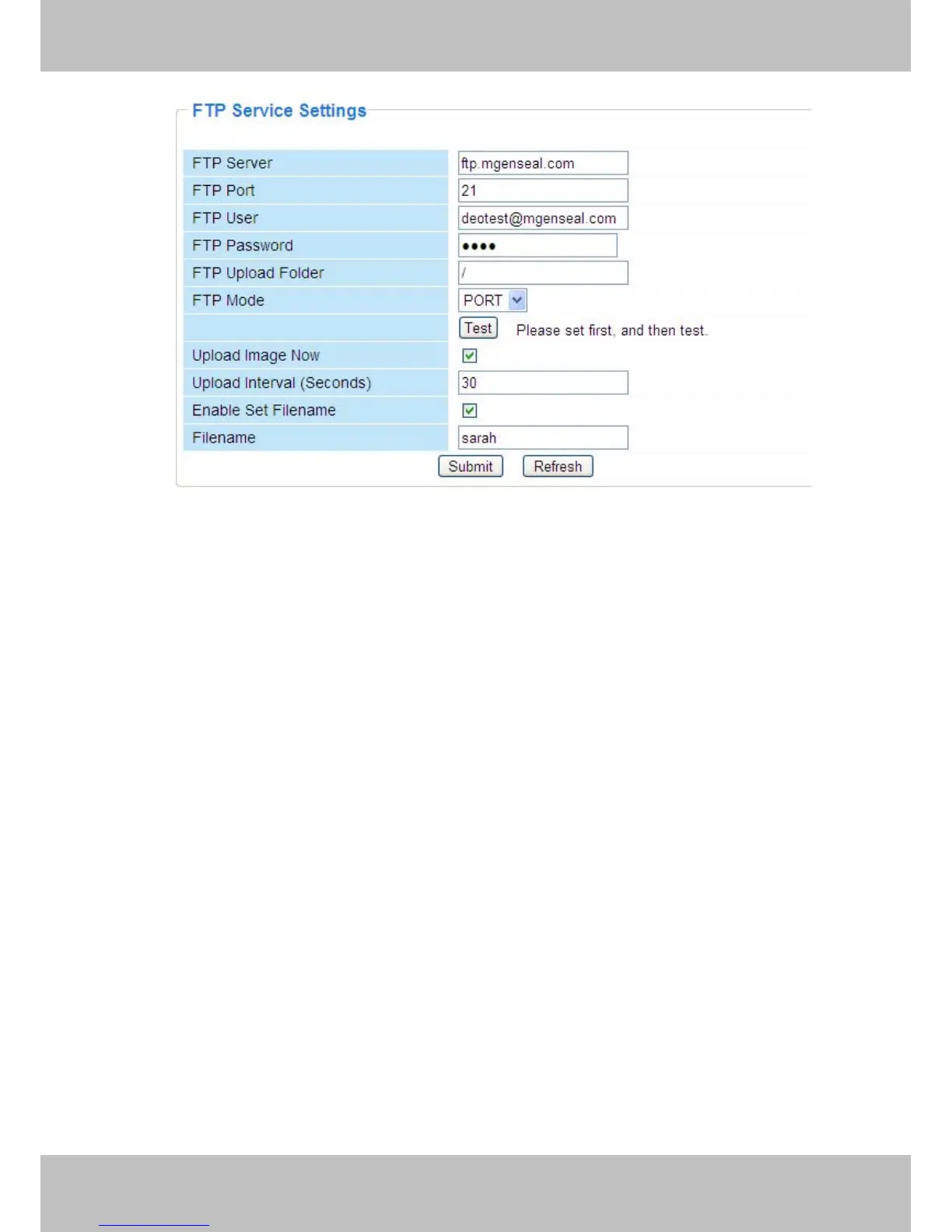FTP Upload Folder: Make sure that the folder you plan to store images exists as the camera