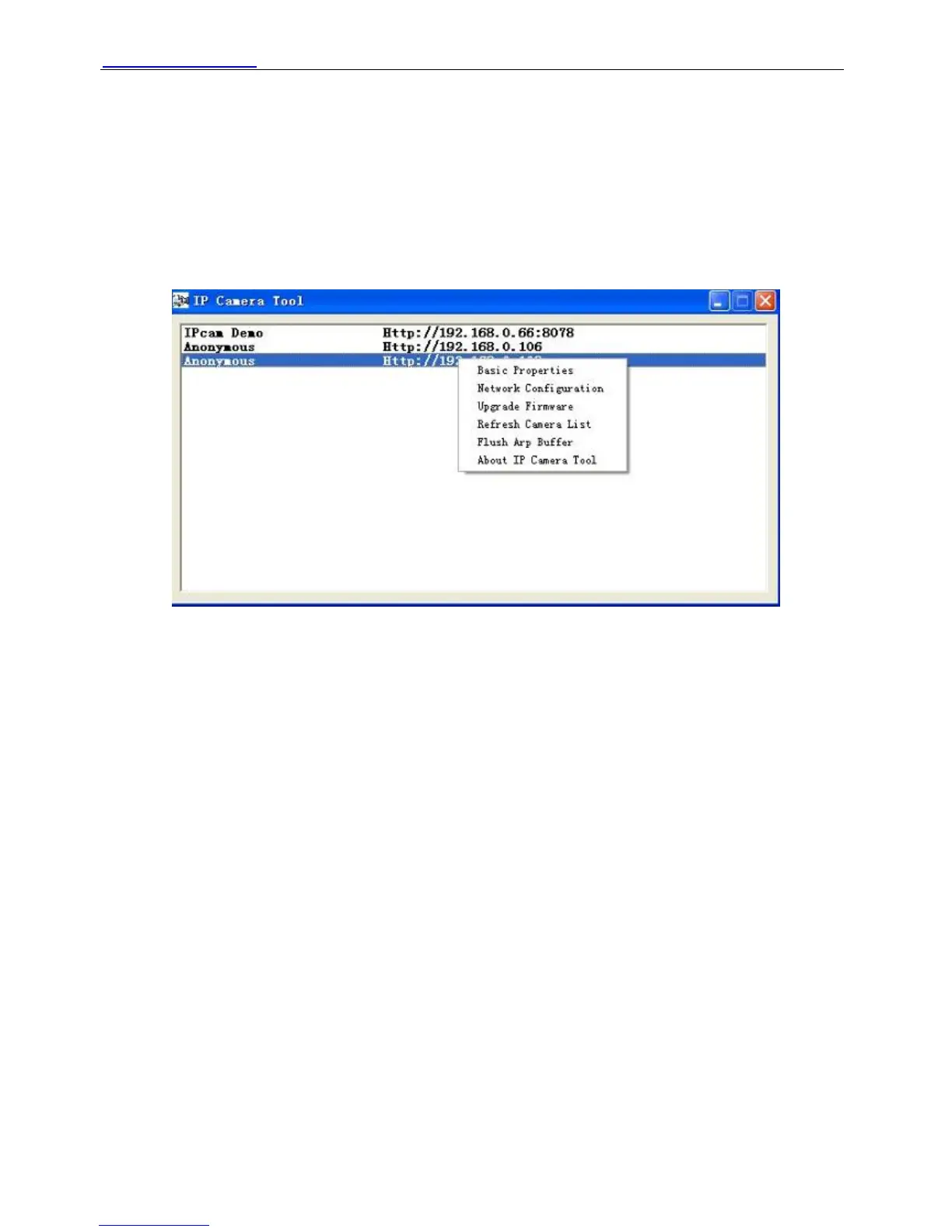Choose the IP Camera list and Click right mouse button; there are six options, Basic Properties,