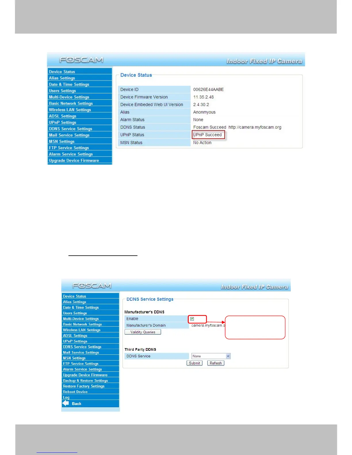 camera’s software will be configured for port forwarding. Back to the “Device Status” panel, you