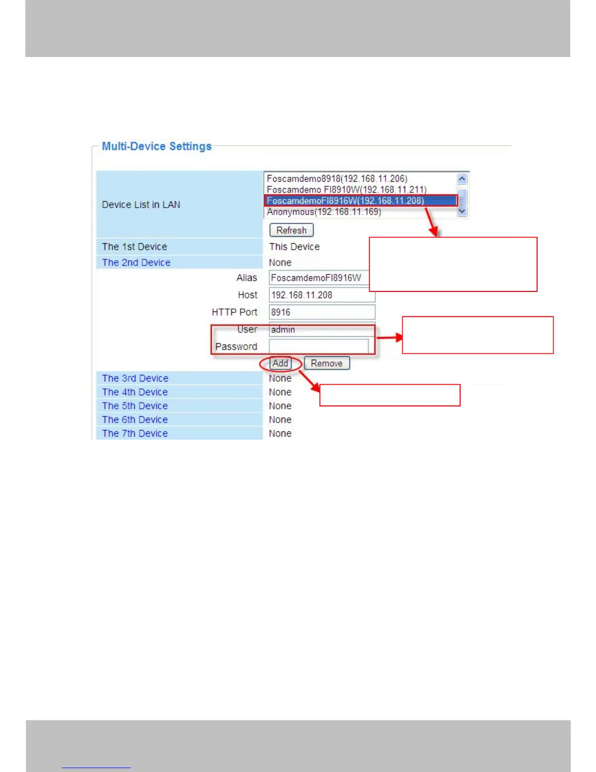 the Device List in LAN, the Alias, Host and Http Port will be filled in the boxes below