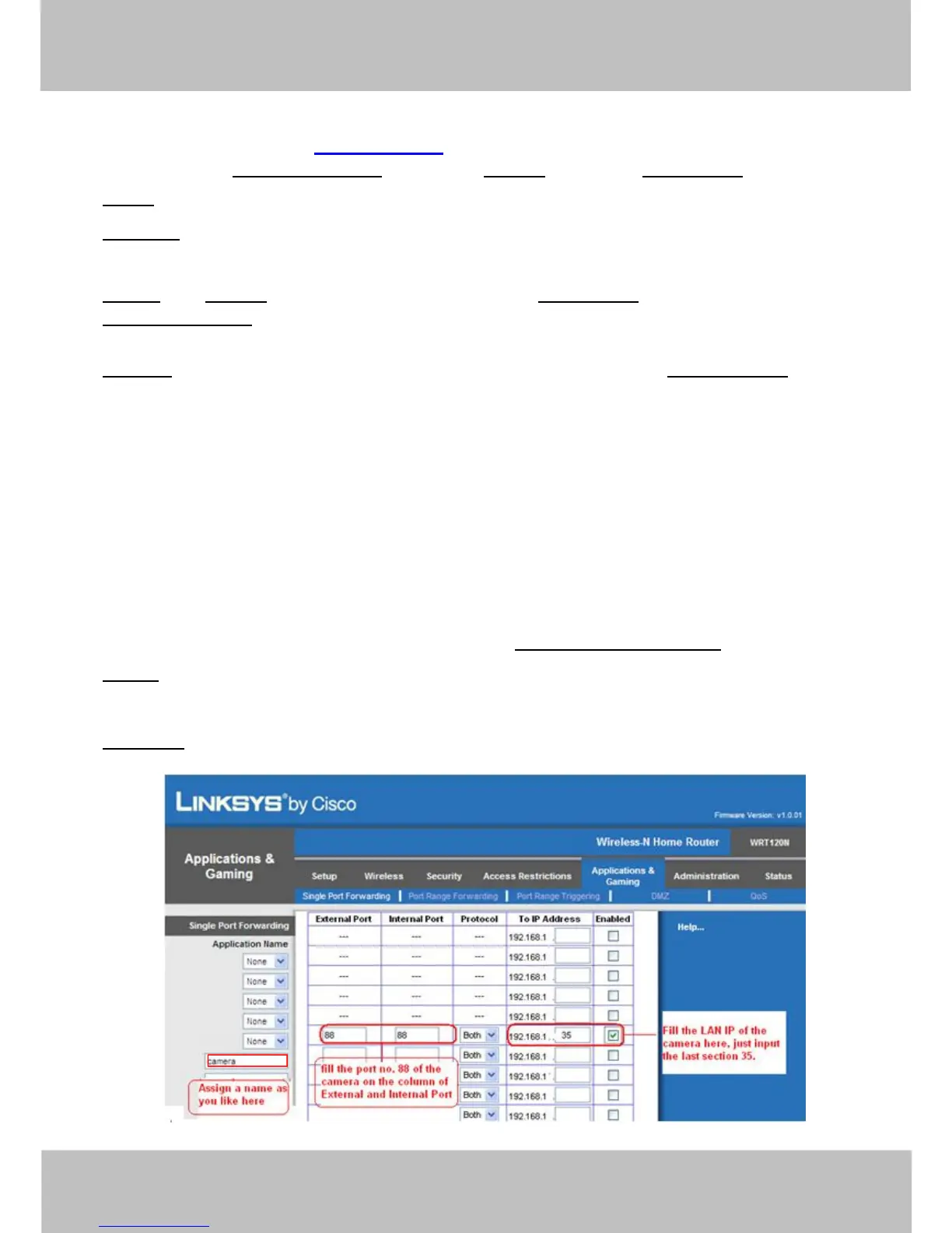 router, and goes to Applications & Gaming->Single Port Forwarding.