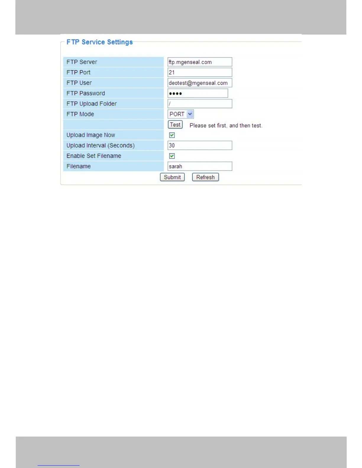 FTP Upload Folder: Make sure that the folder you plan to store images exists as the camera