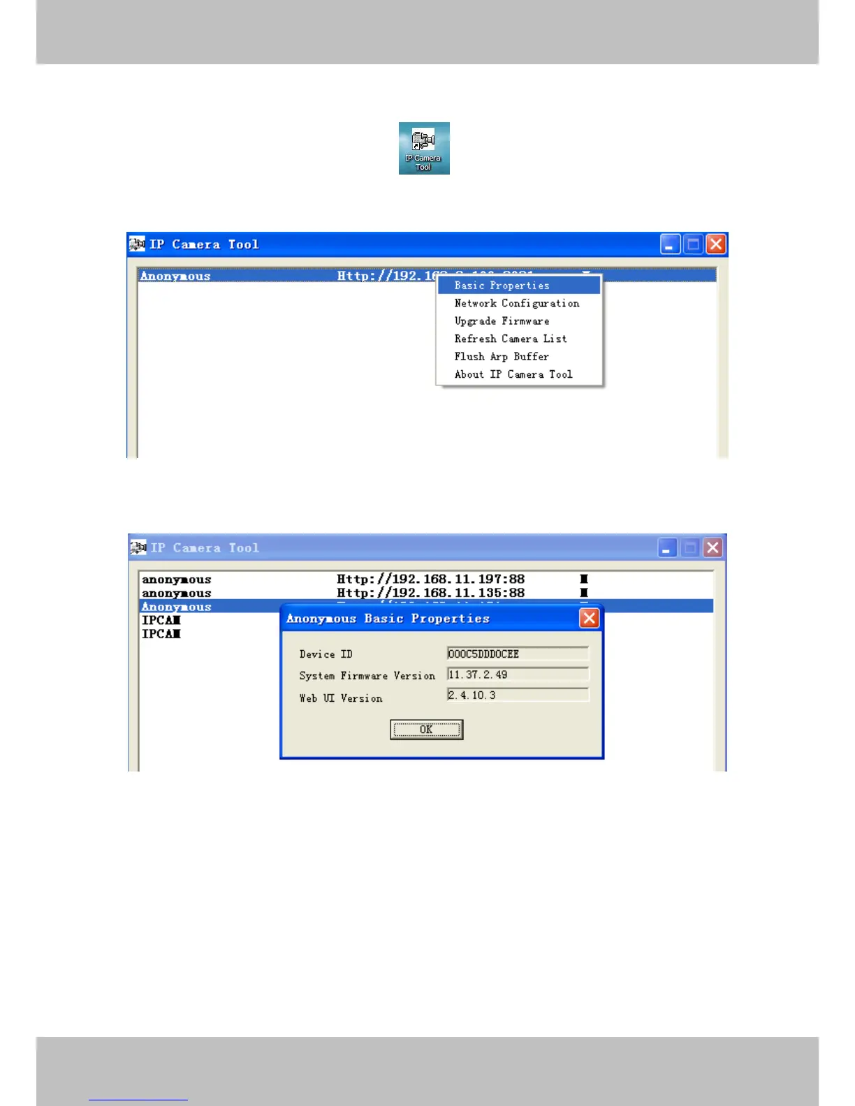 Double click the the icon “IP Camera.exe , select the camera IP, right click and select