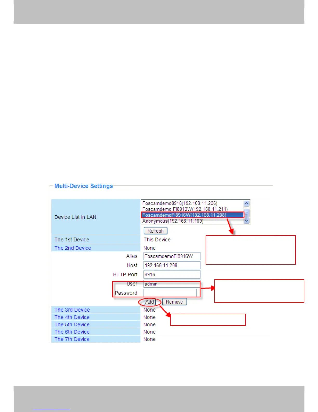 the Device List in LAN, the Alias, Host and Http Port will be filled in the boxes below