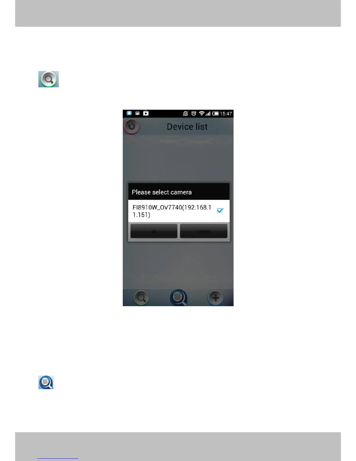 : Click this icon and the APP will search all cameras in LAN automatically. Such as the
