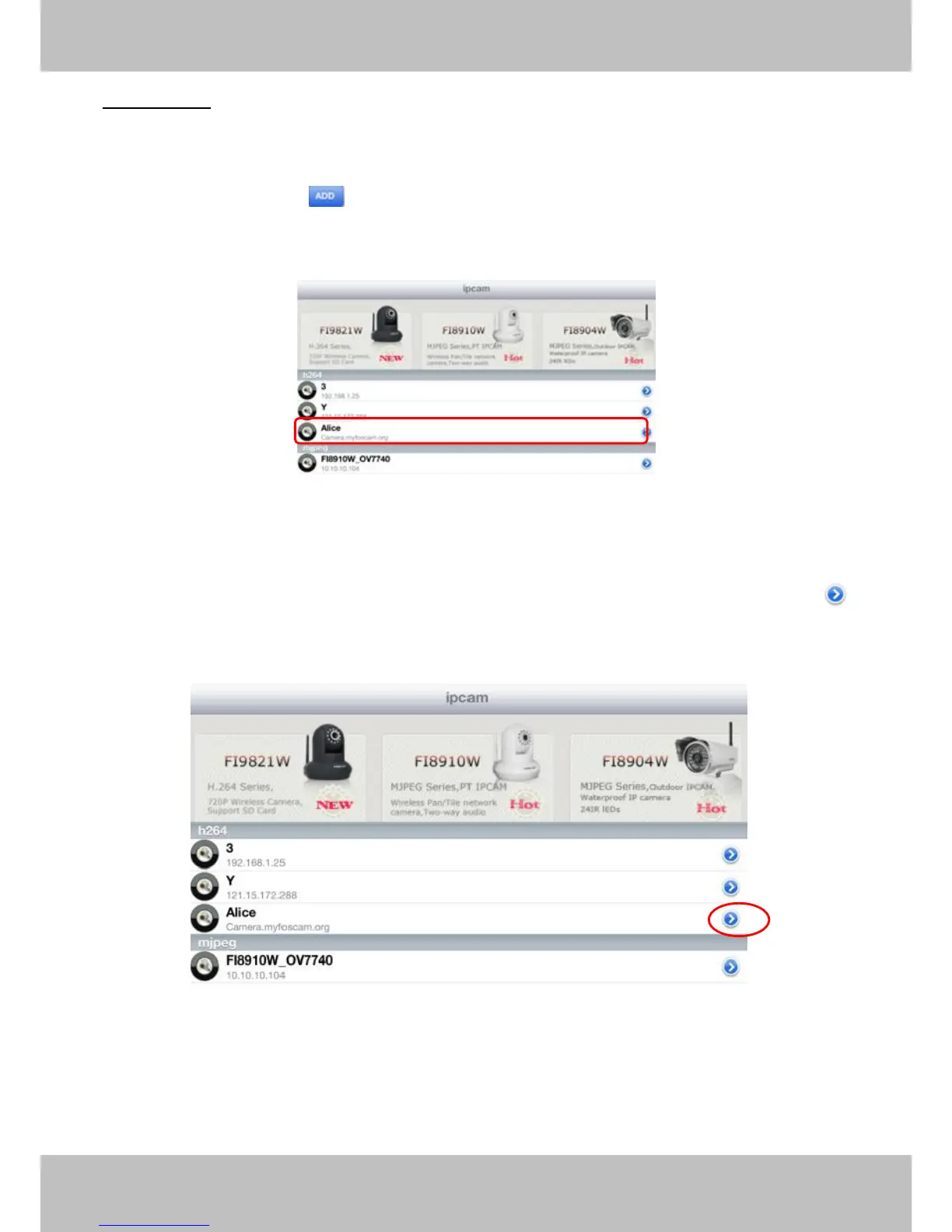 Step 3: Click Add button to add cameras, then you can see the camera name in the ip