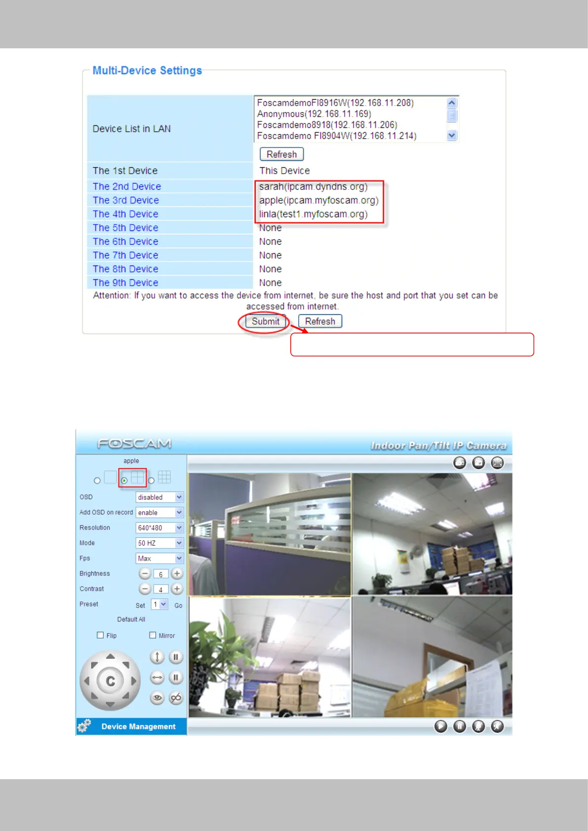 When you are away from home, you can use the first camera s DDNS domain name and port to
