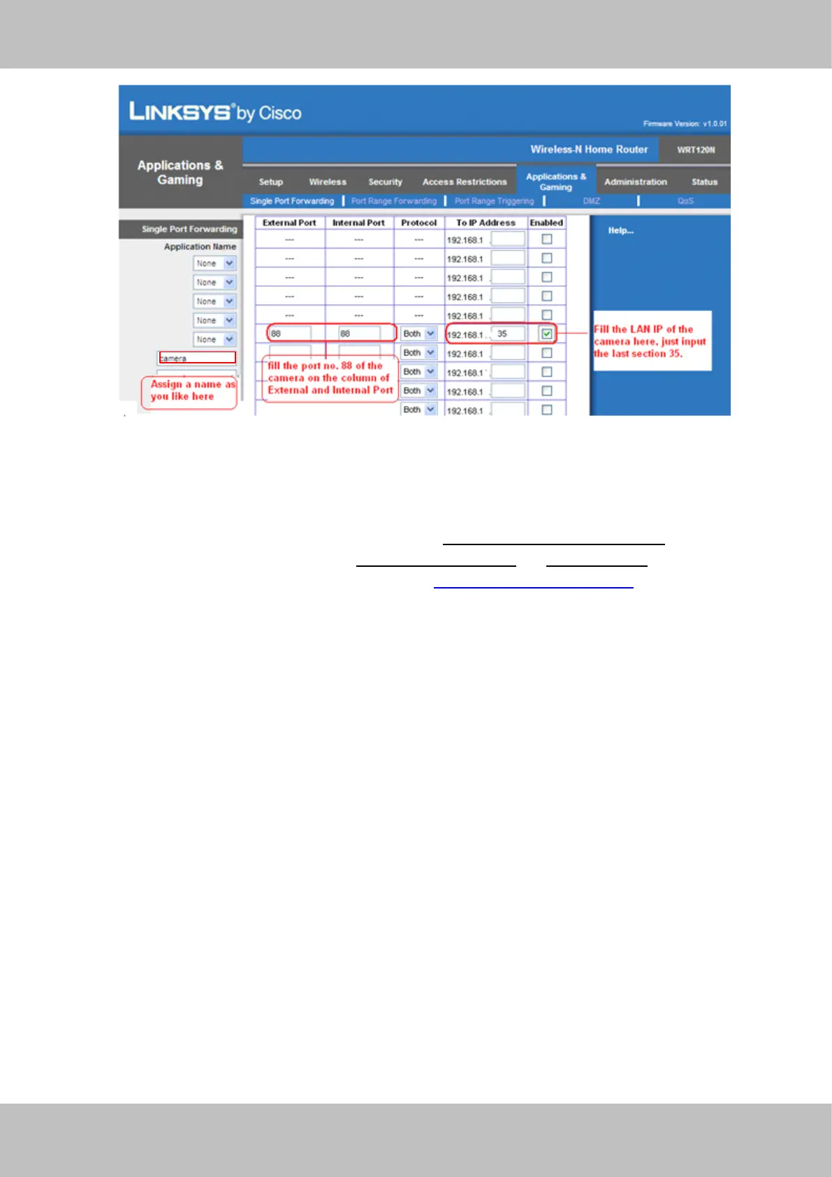 accessing link of the camera via internet would be http:// ycxgwp.no-ip.info :88