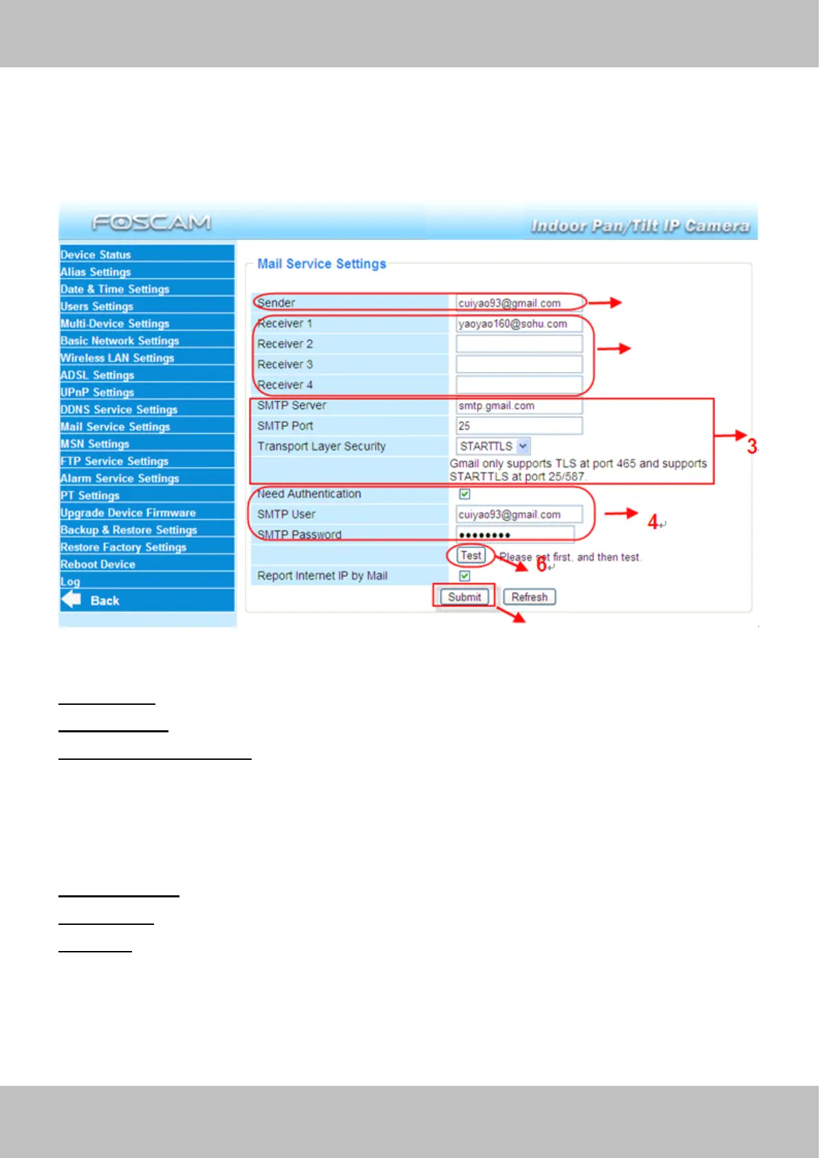 If you want the camera to send emails when motion/sound has been detected , Mail