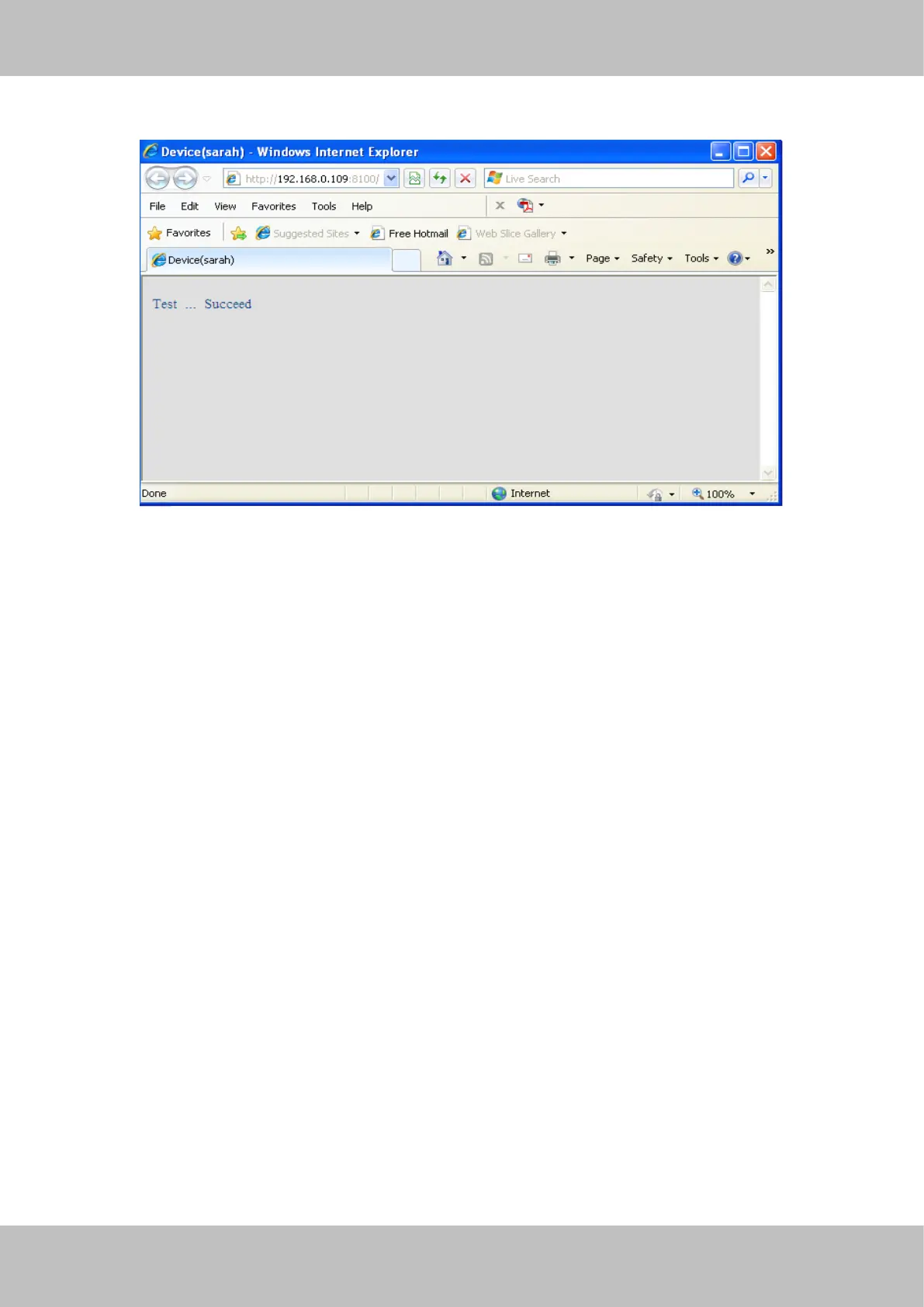 Test , t he following screen displays if successful.