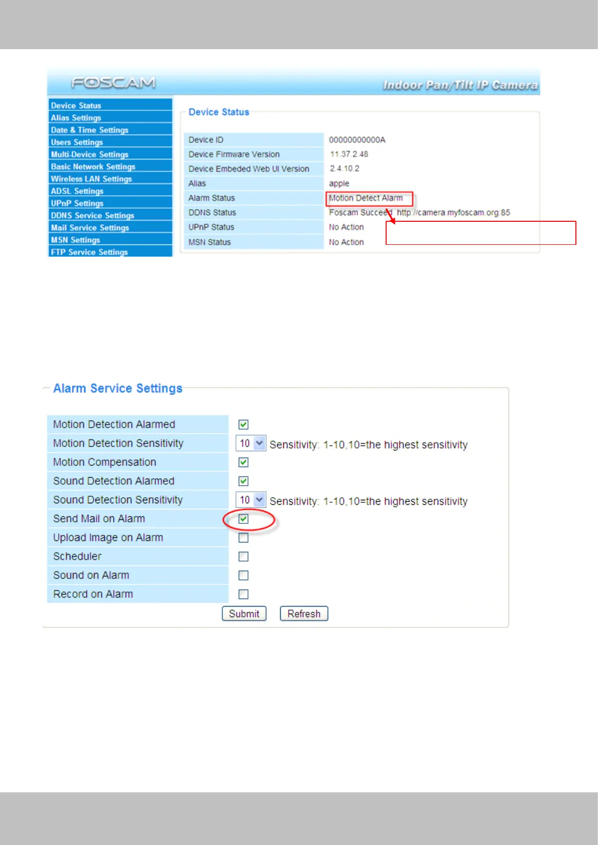 Settings (Figure 3. 36/3.37 ) first and t hen set motion /sound alarm as pictured below