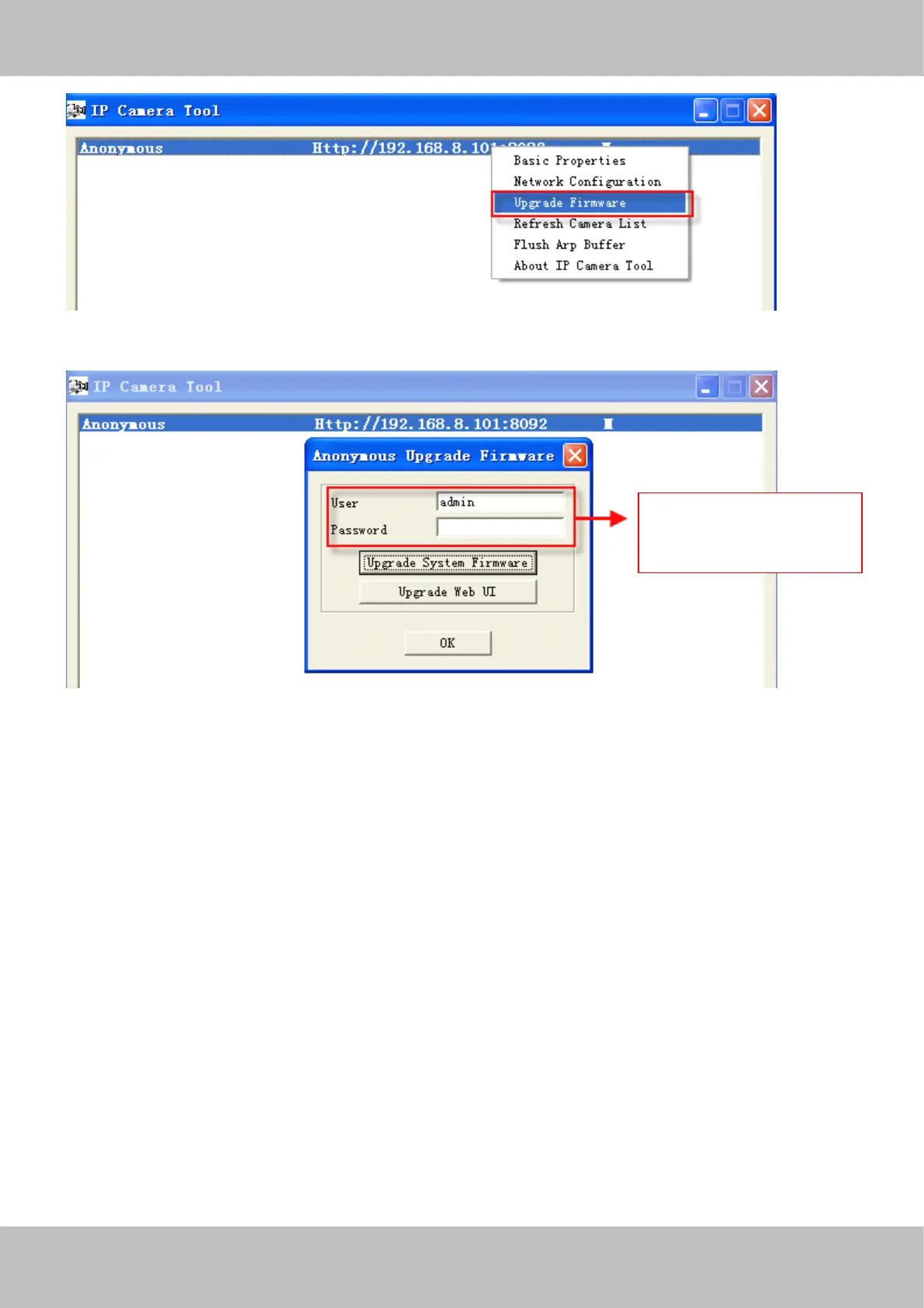4 ) Never shut down the power of the camera during upgrade until the IP camera restart and get