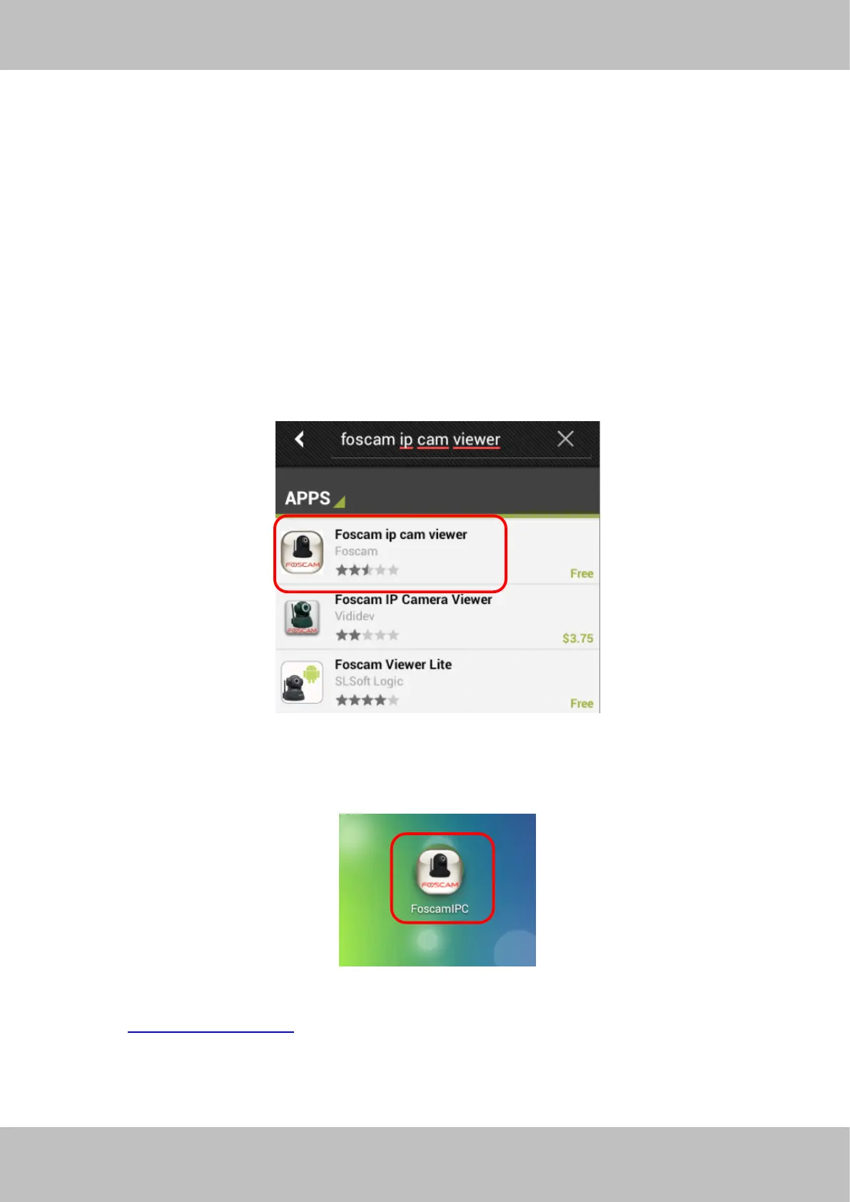 1) Search the APP “ Foscam ip cam viewer ” in the Google Play directly if your cell phone has