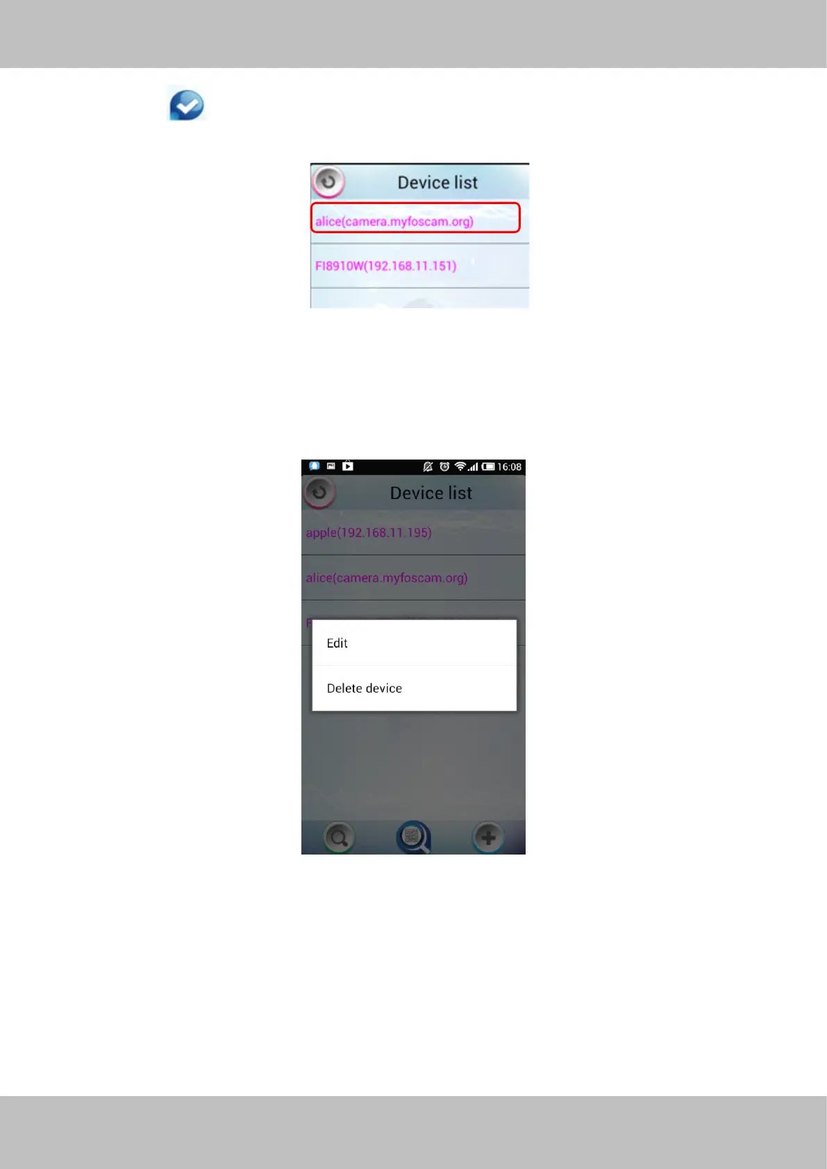 Edit: Re- edit the camera ’ s information , such as the Http / Media port, user name and password,