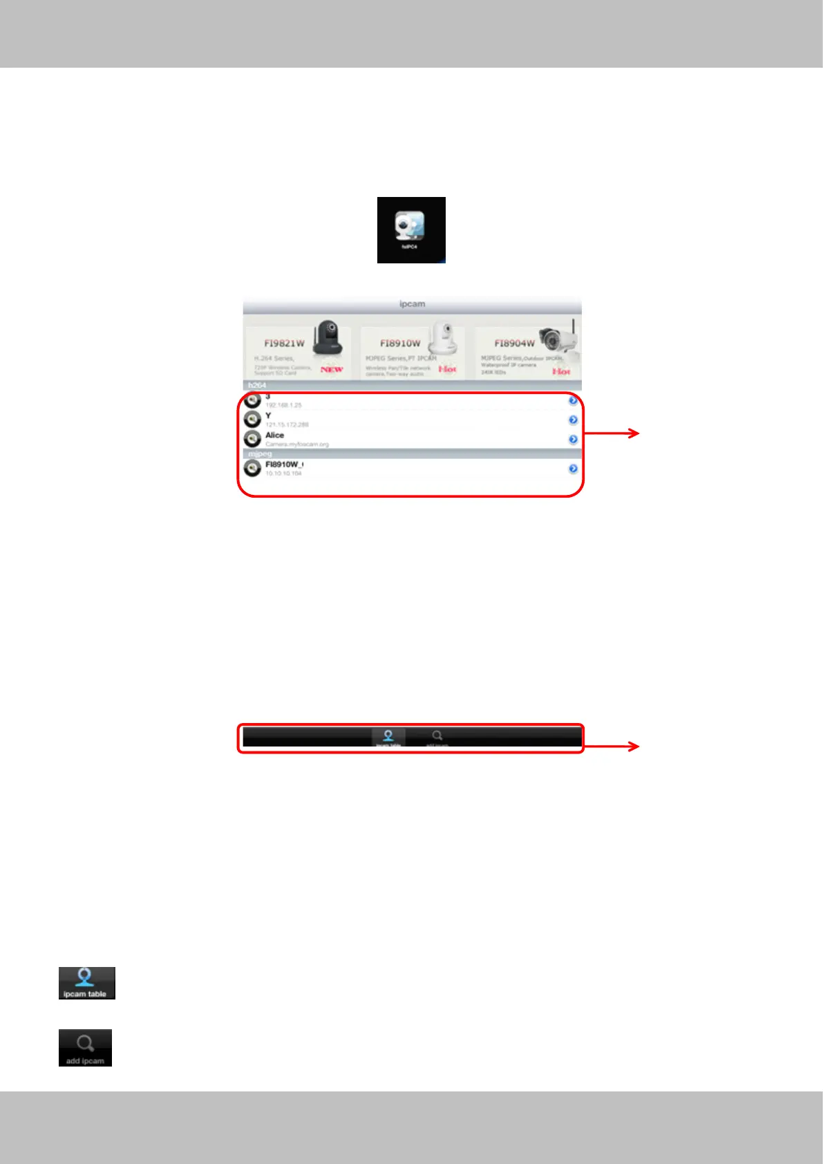 C lick the icon and you can go to “ ipcam table ” page directly: