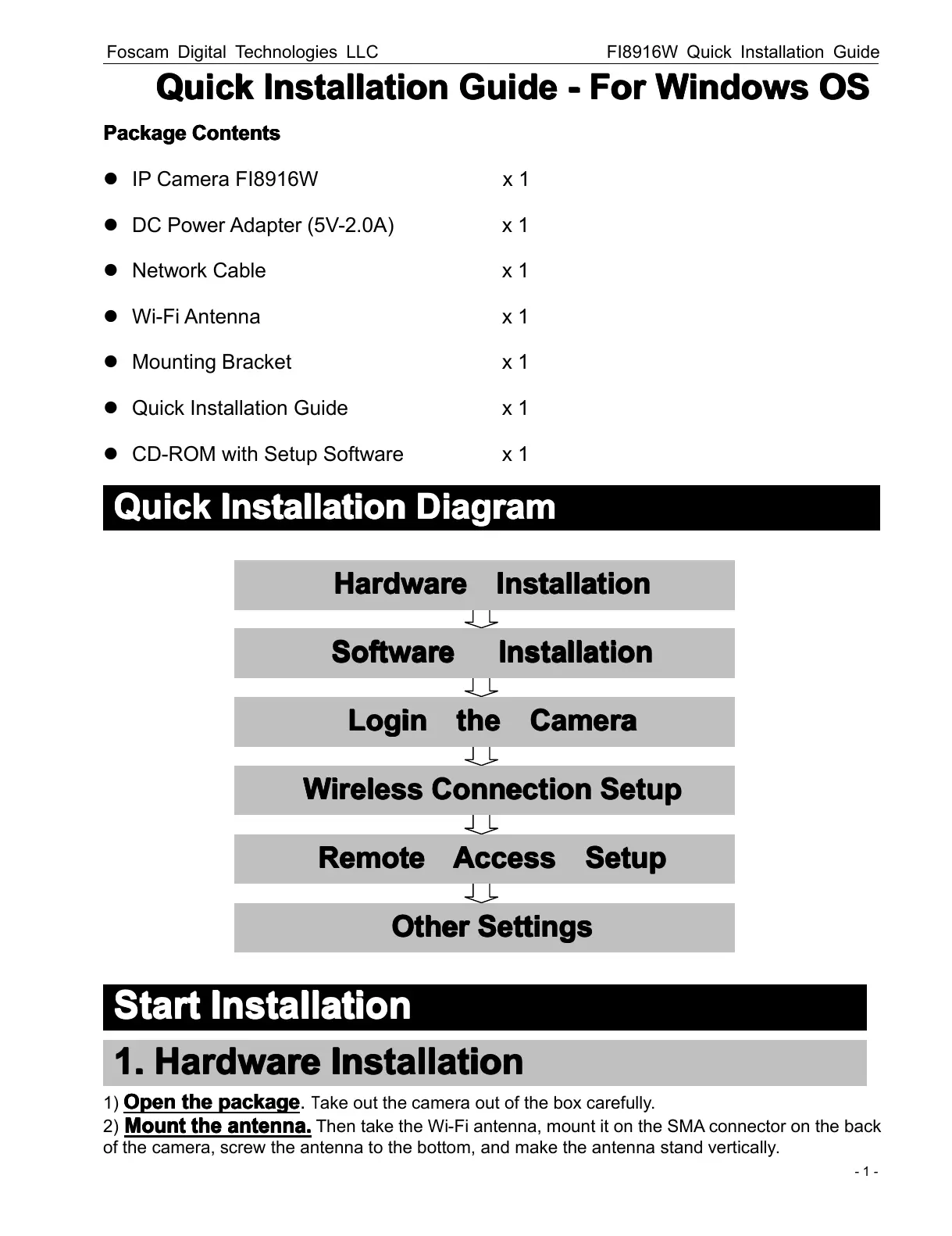 Foscam Digital Technologies LLC FI8916W Quick Installation Guide