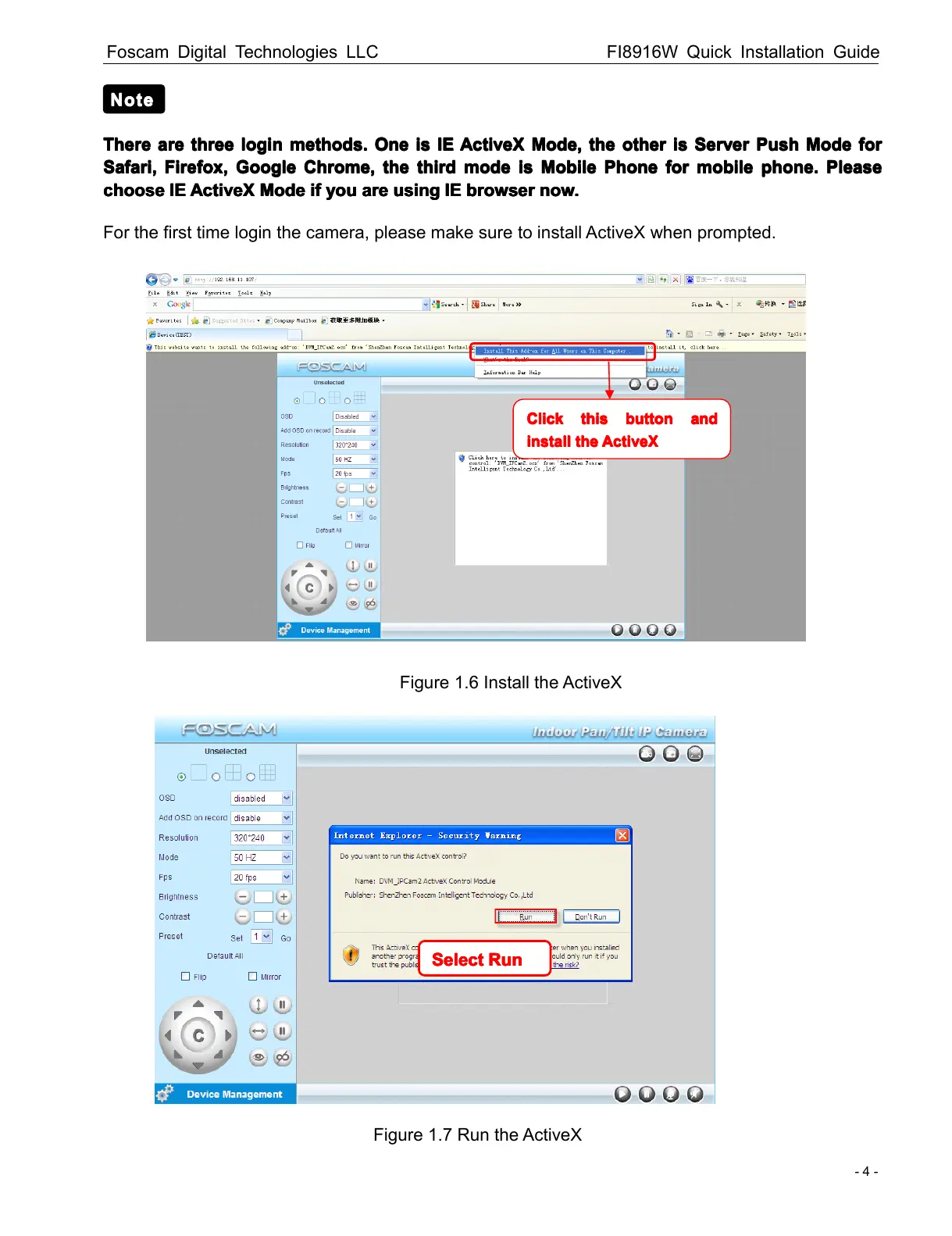 For the first time login the camera, please make sure to install ActiveX when prompted .