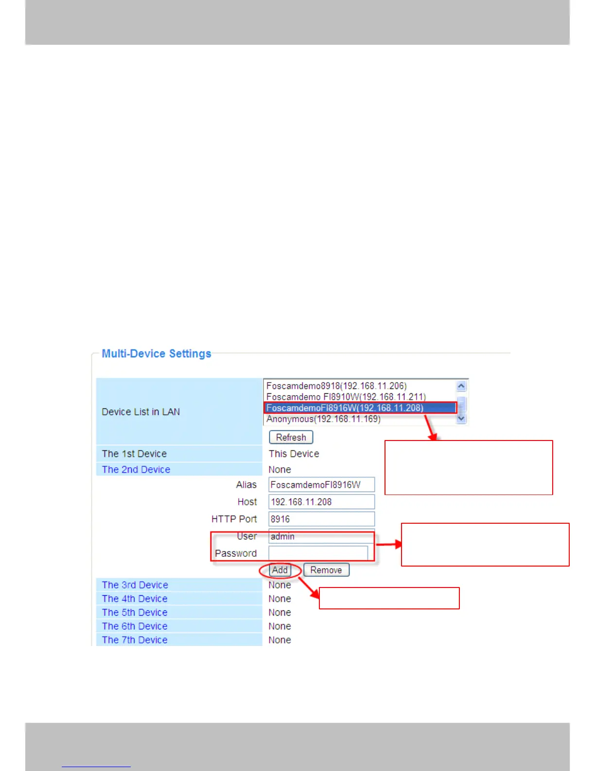 In Multi-Device Settings page, you can see all devices searched in LAN. The 1st Device is th e