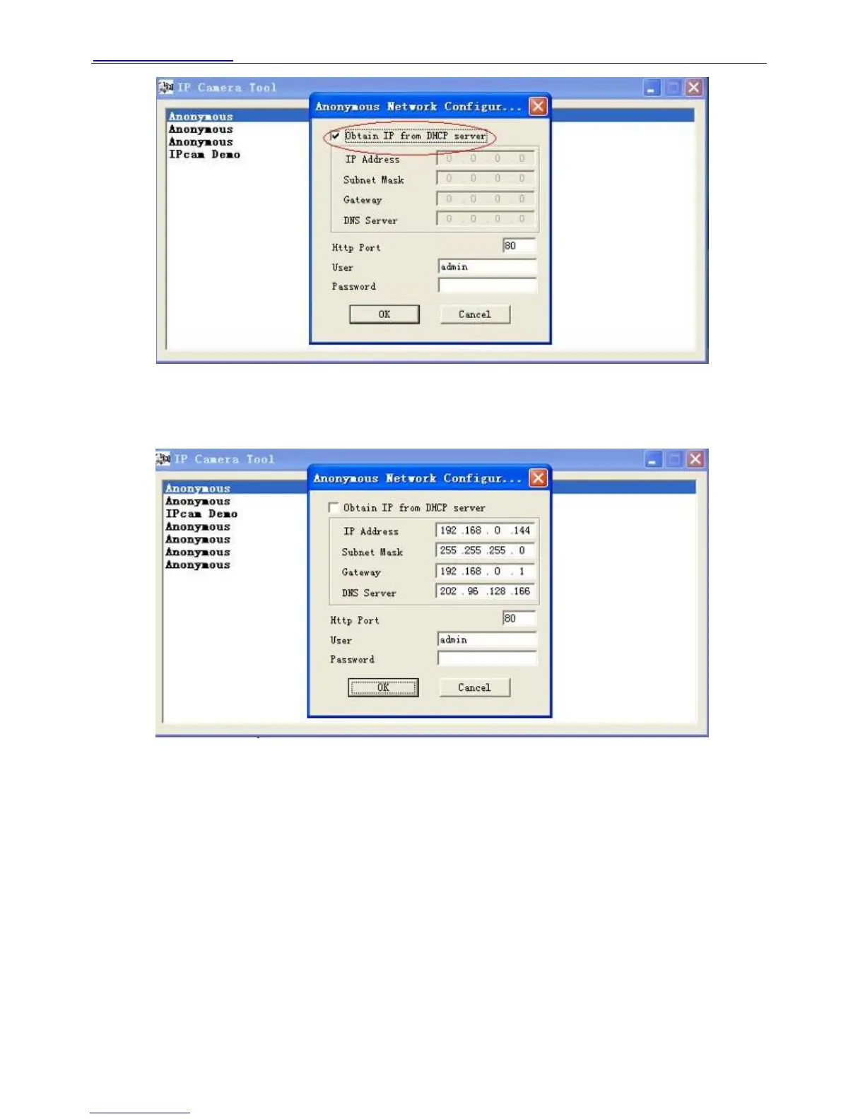 words, the camera will have a dynamic IP. (Make sure the Router which the camera connects