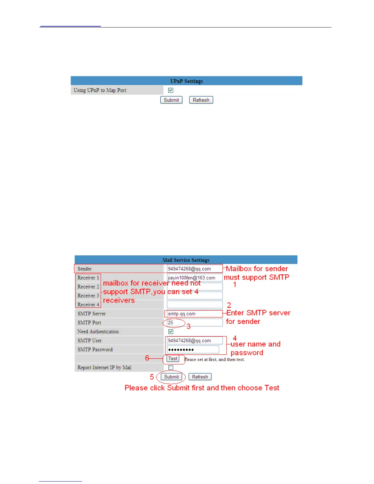 Here you can fill in four receivers to receive images. SMTP port usually is 25, some SMTP