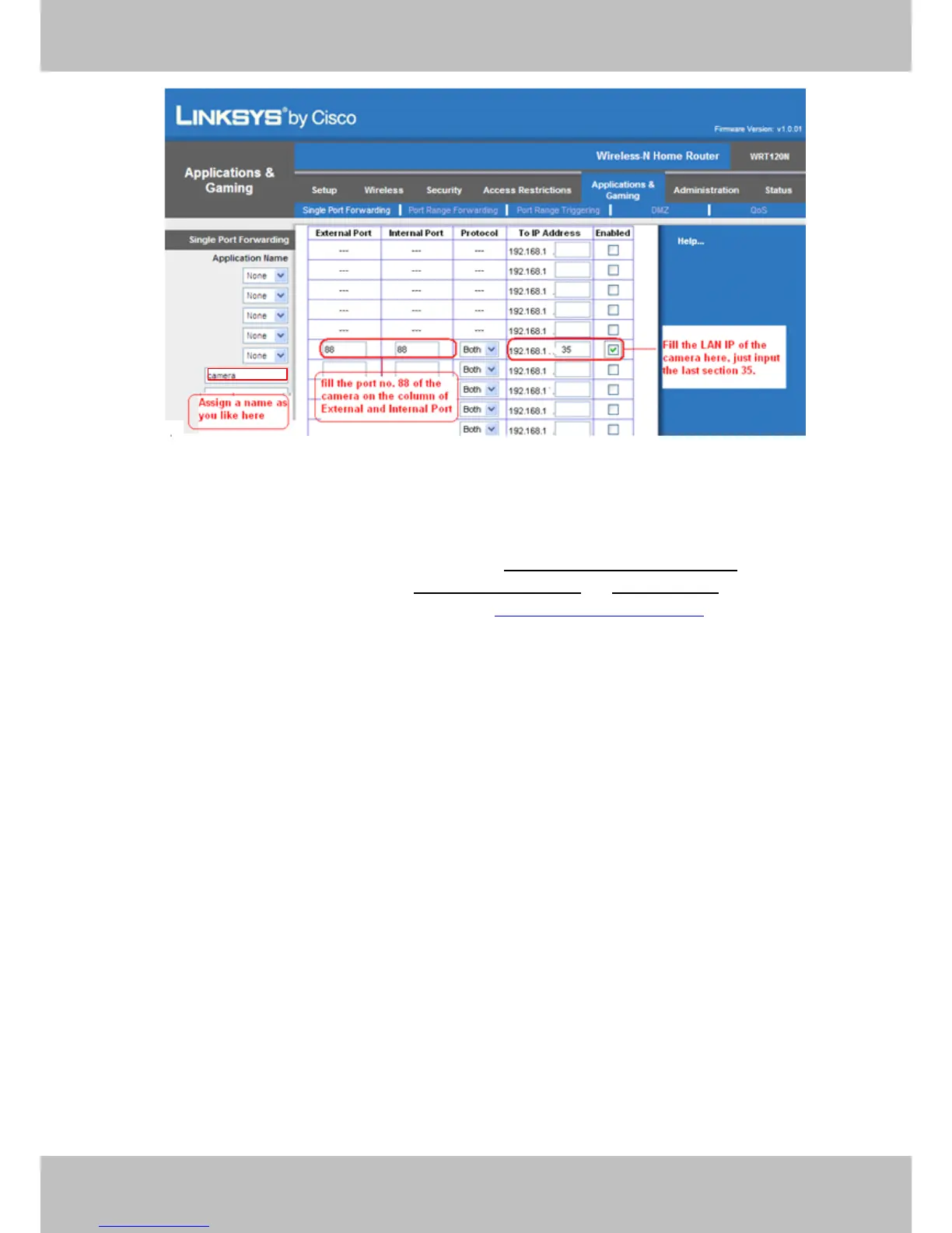 accessing link of the camera via internet would be http:// ycxgwp.no-ip.info :88