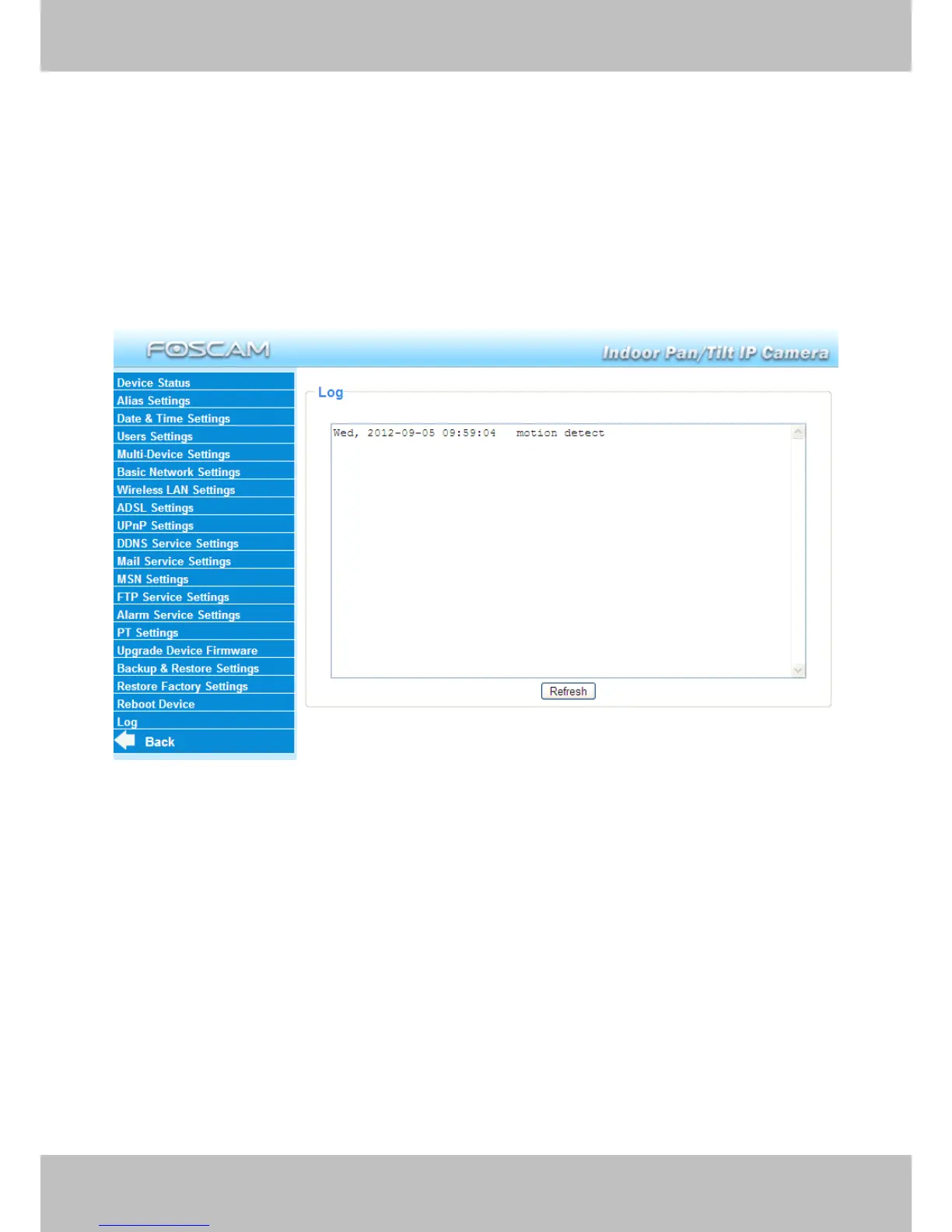 Foscam FI8918W - Reboot Device; Log; Back