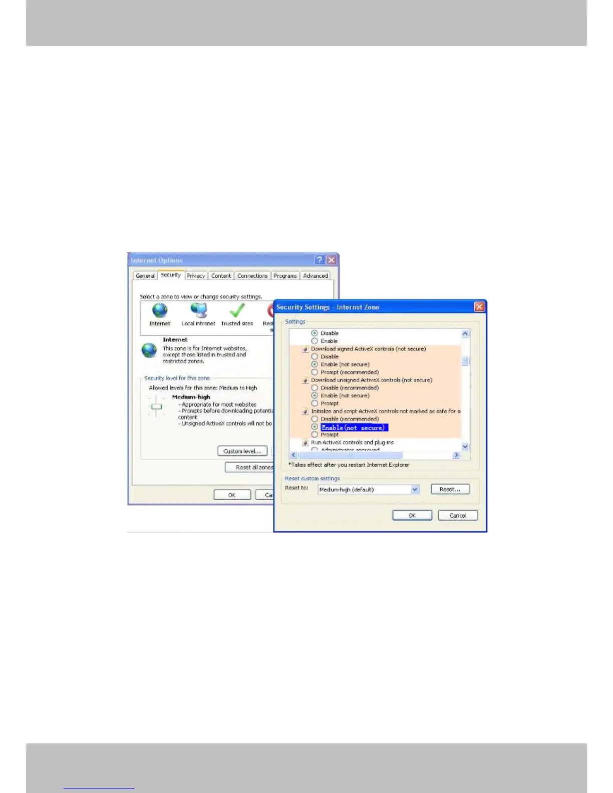2 ) D ownload ActiveX controller and set the security setting of IE : IE browser � Tool � Internet