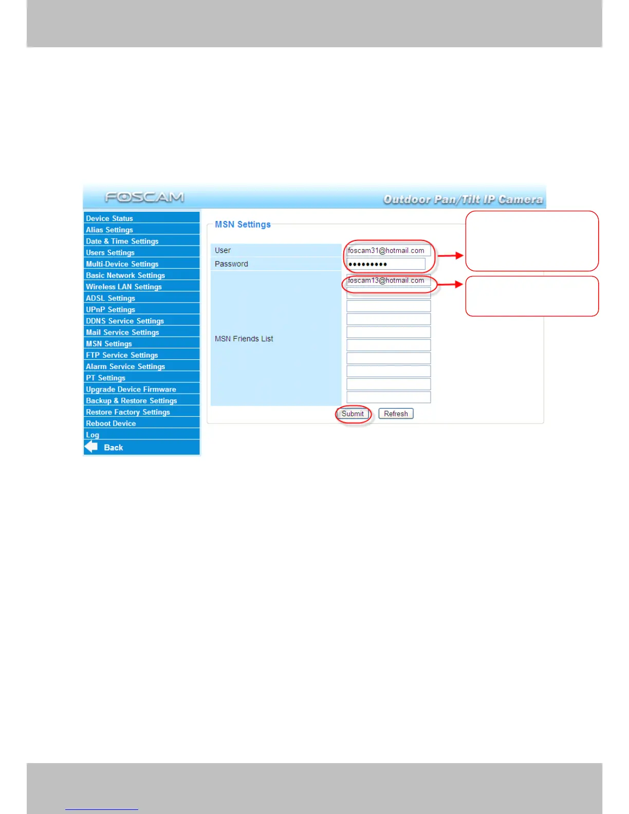 Foscam FI8919W - MSN Setting