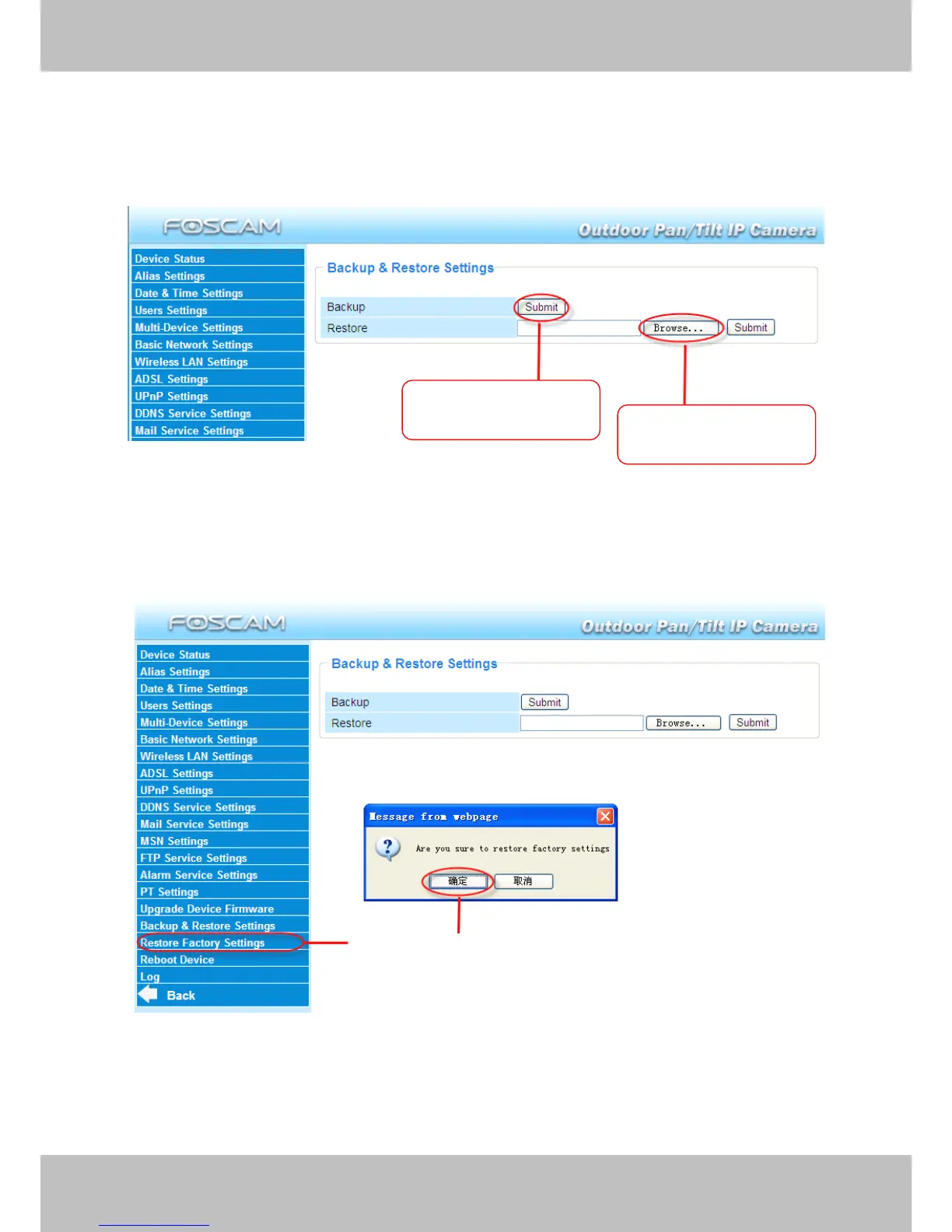 Foscam FI8919W - Backup and Restore Settings