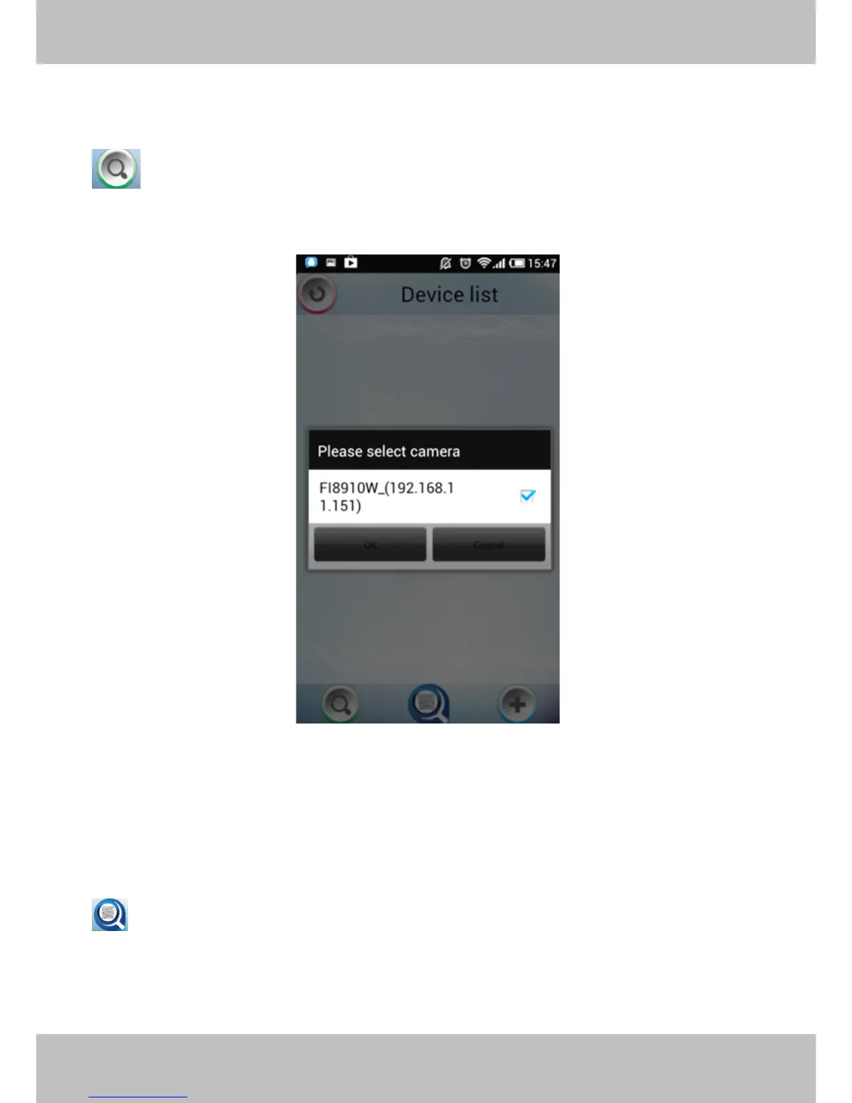 : Click this icon and the APP will search all cameras in LAN automatically. Such as the
