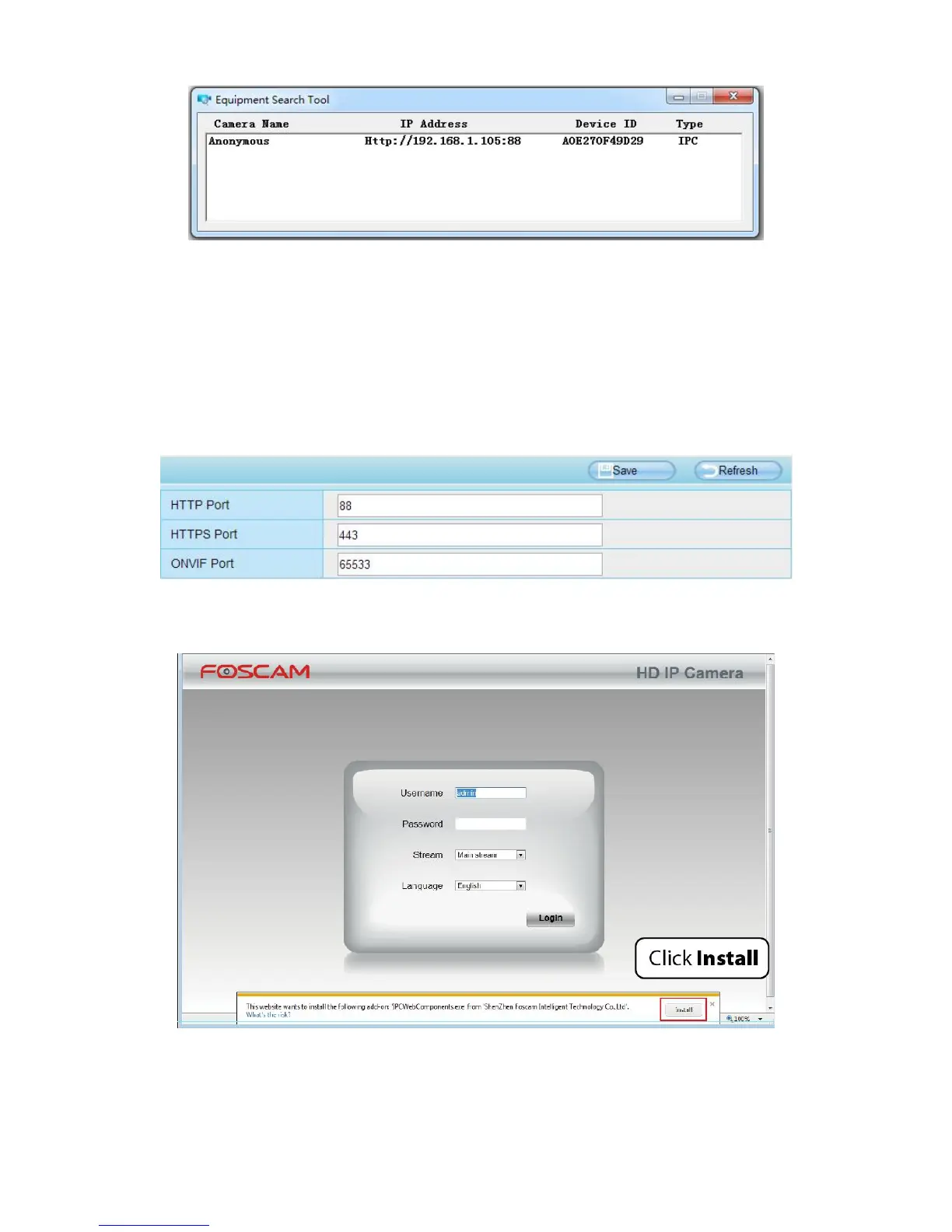 The default HTTPS port NO. is 443. You can use the URL to access the camera: https:// LAN IP + HTTPS port