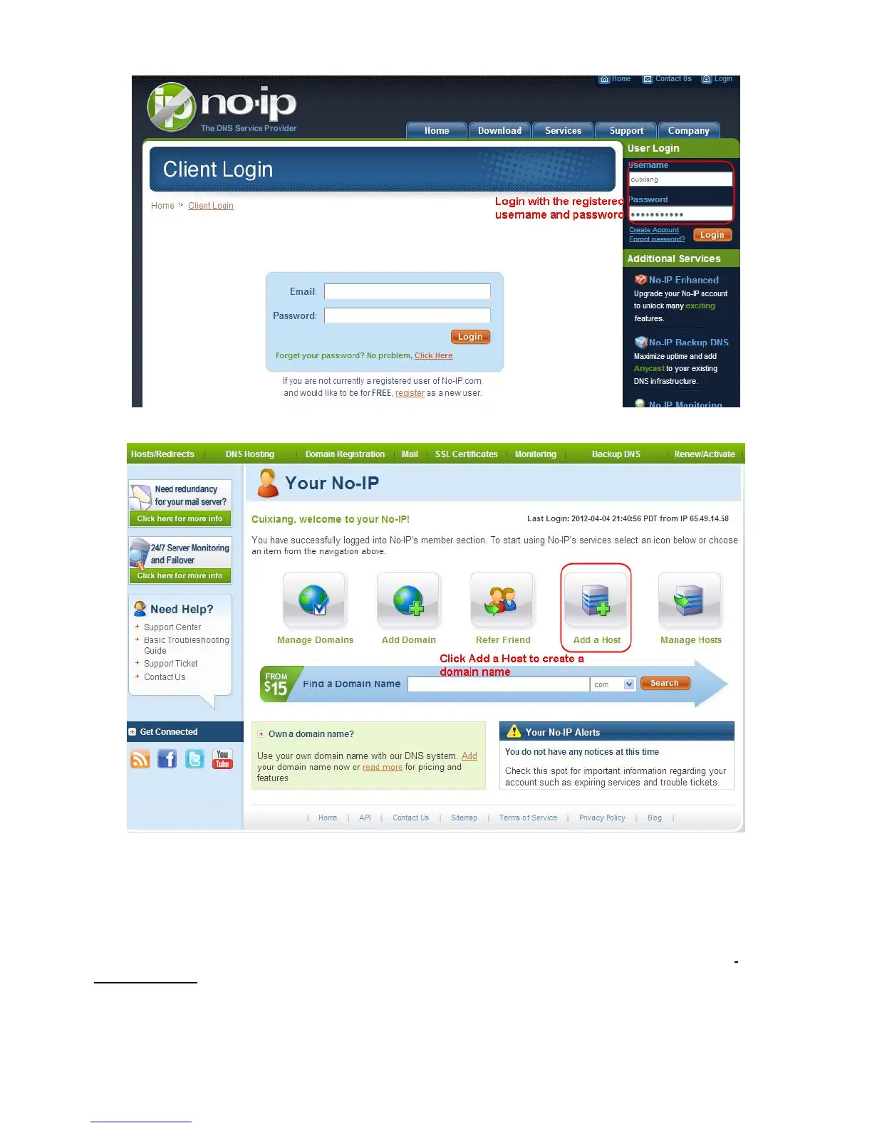 Please create the domain name step by step according to instructions on www.no-ip.com