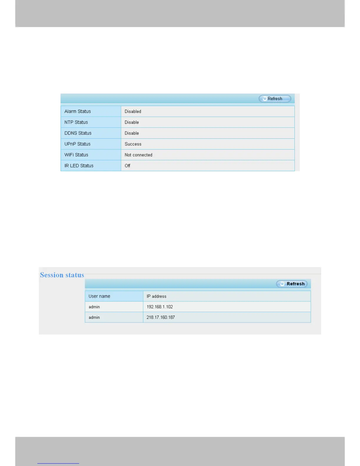 Session status will display who and which IP is visiting the camera now.