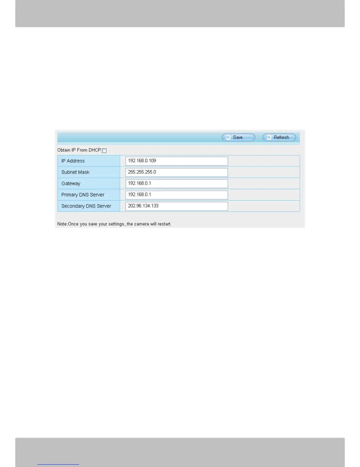 If you want to set a static IP for the camera, please go to IP Configuration page. Keep the