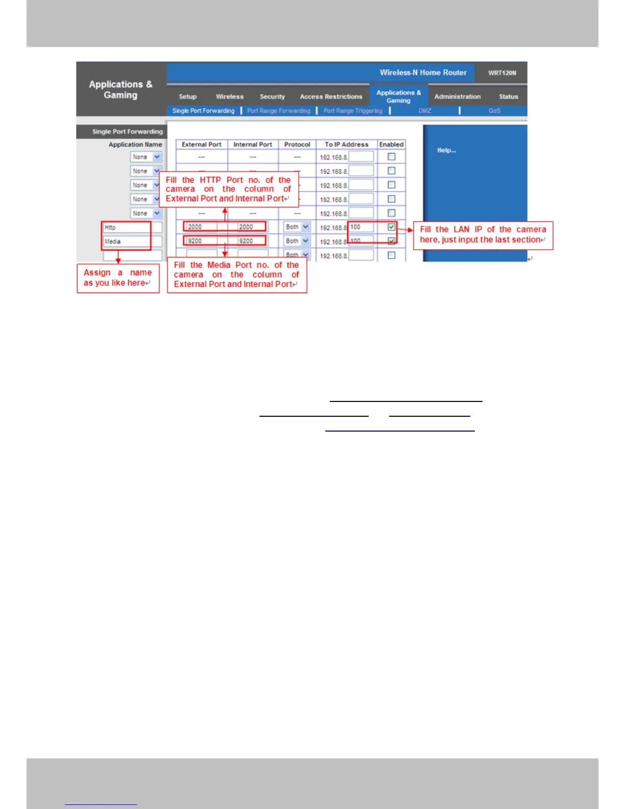 After the port forwarding is finished, you can use the domain name+ http no. to access the