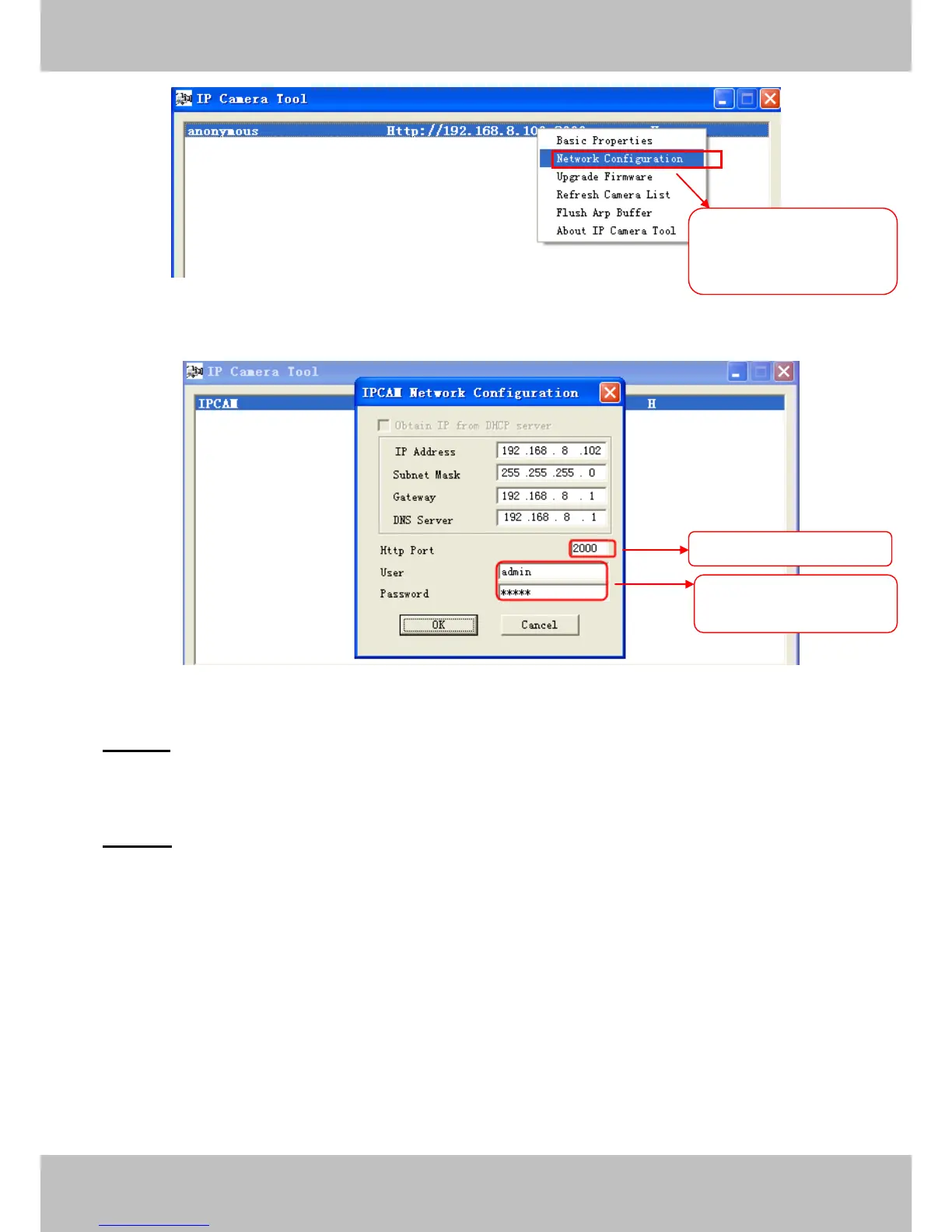 our example it was changed to 2000, so we see http://192.168.8.102:2000 in IP Camera Tool.