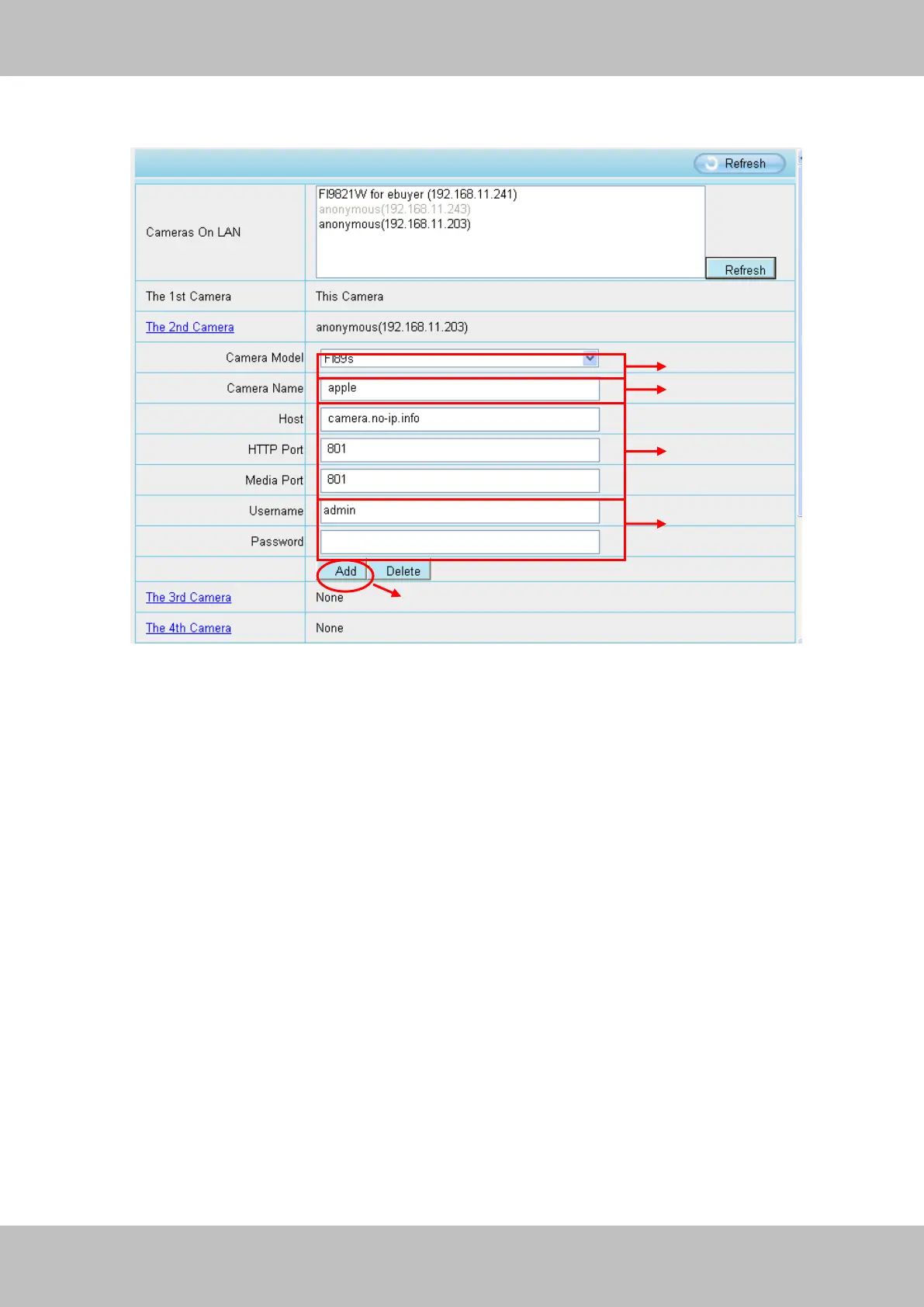 3----- Fill in the 2nd camera’s DDNS host not LAN IP