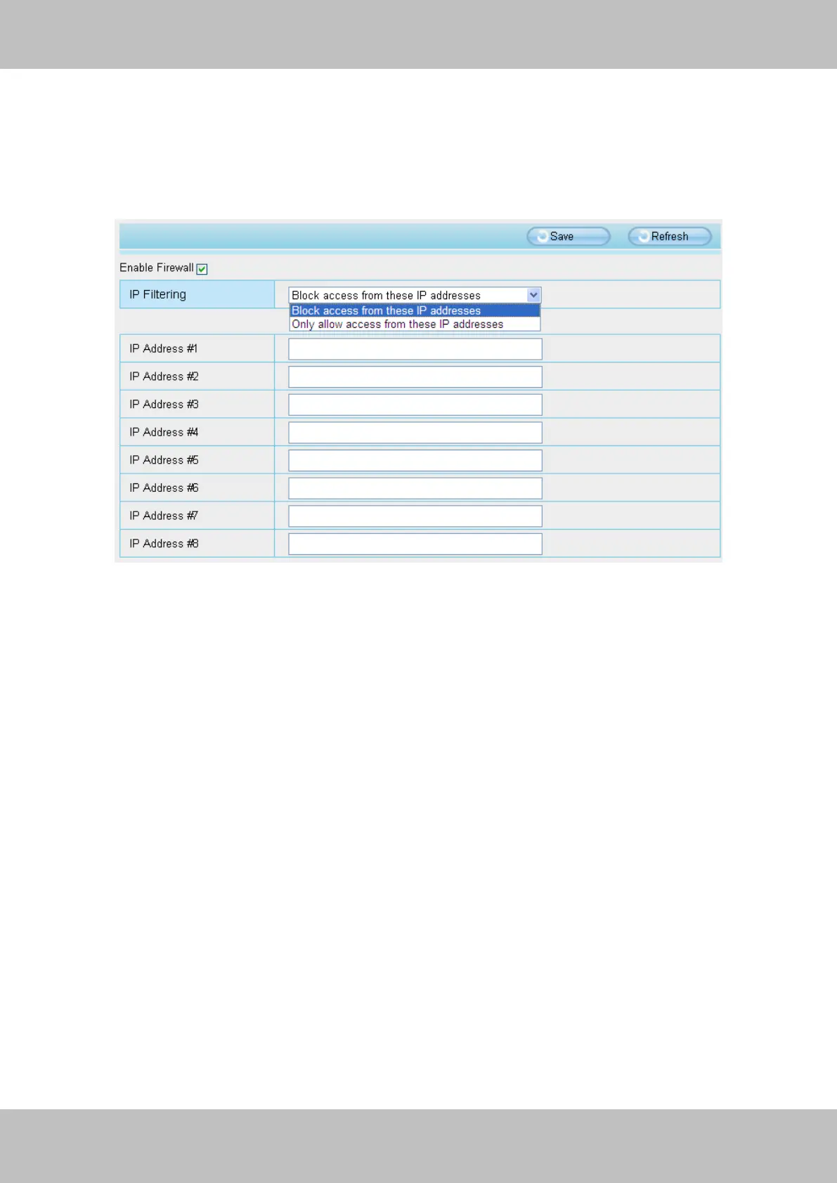 Enable firewall, If you select Only allow access from these IP addresses and fill in 8 IP addresses