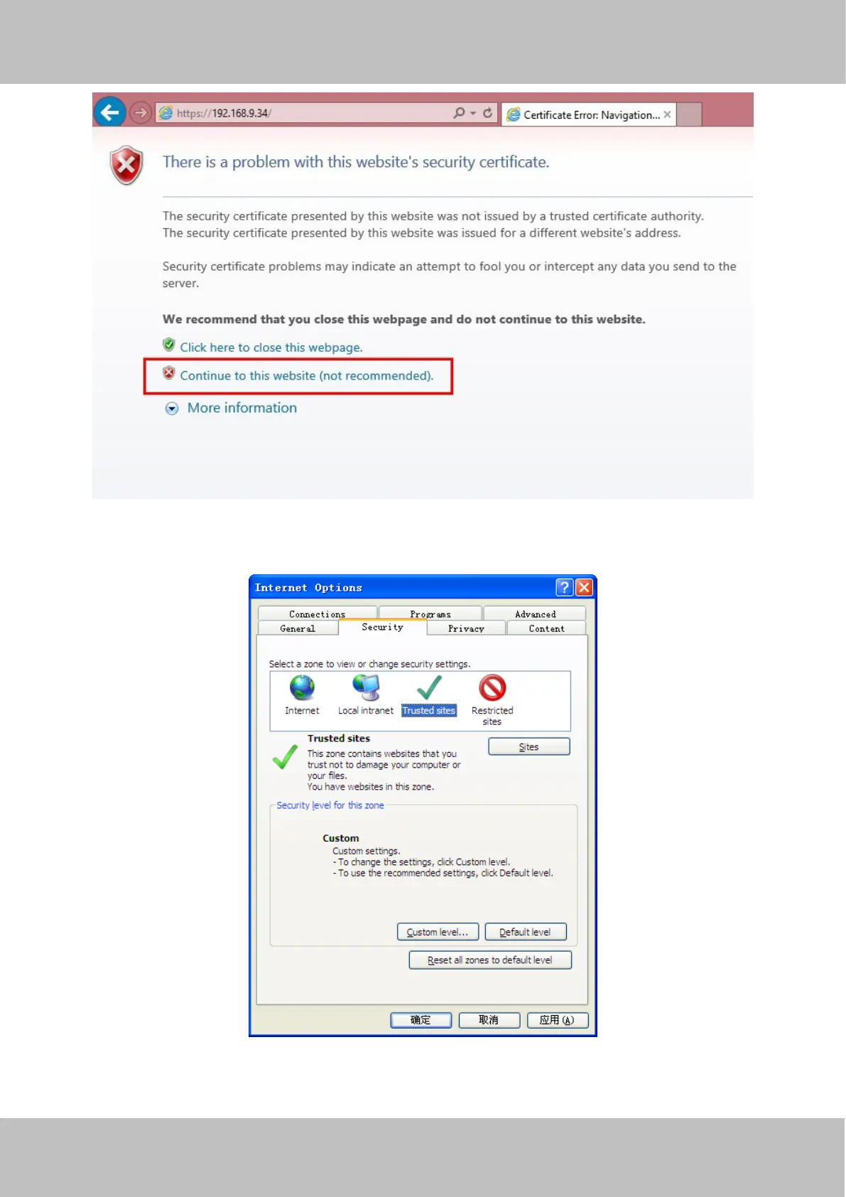 For Firefox, you can add the trusted as the following way:
