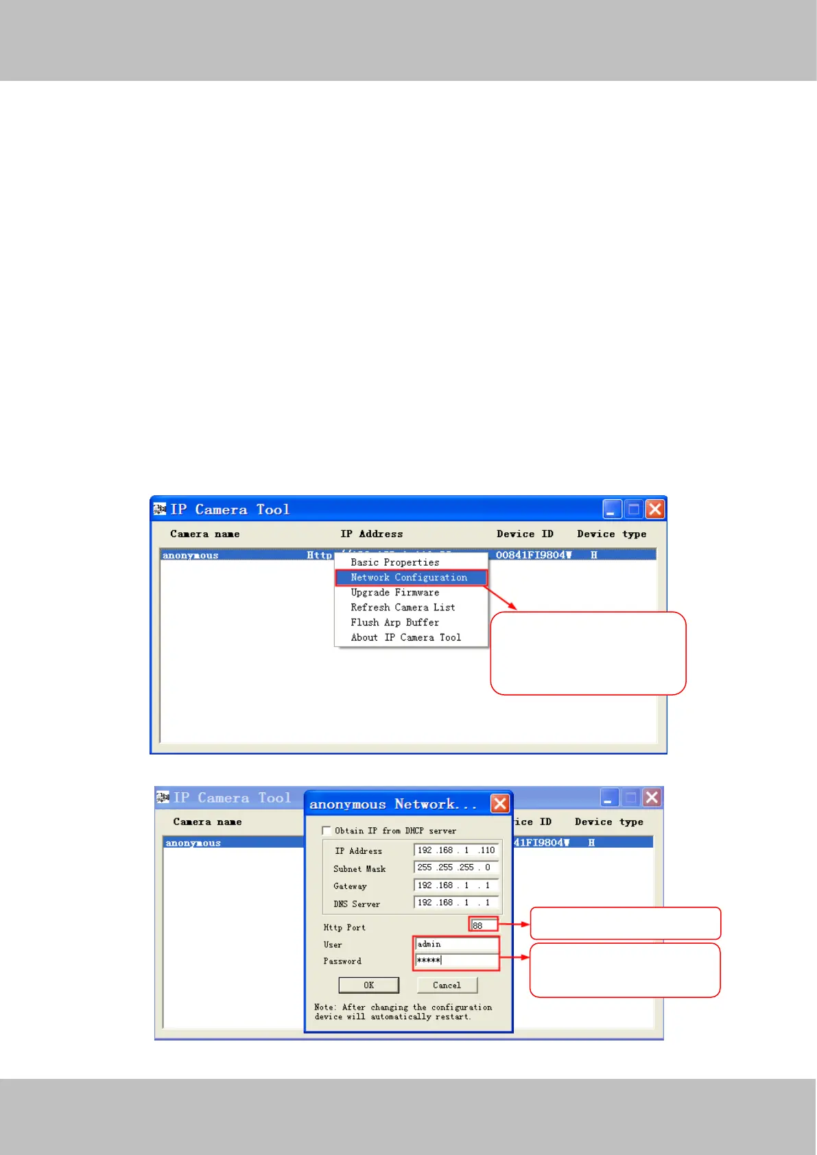 How to assign a different HTTP Port No. and fixed the LAN IP of the camera by the IP Camera