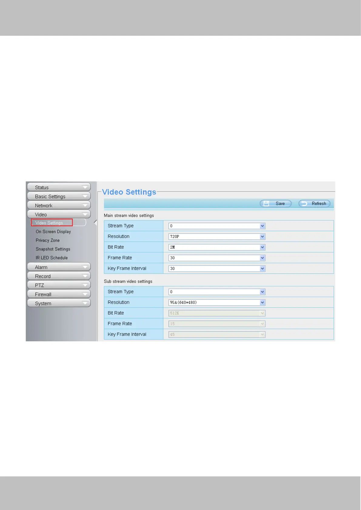 There are two ways to set the stream video settings. They are main stream video settings and sub stream