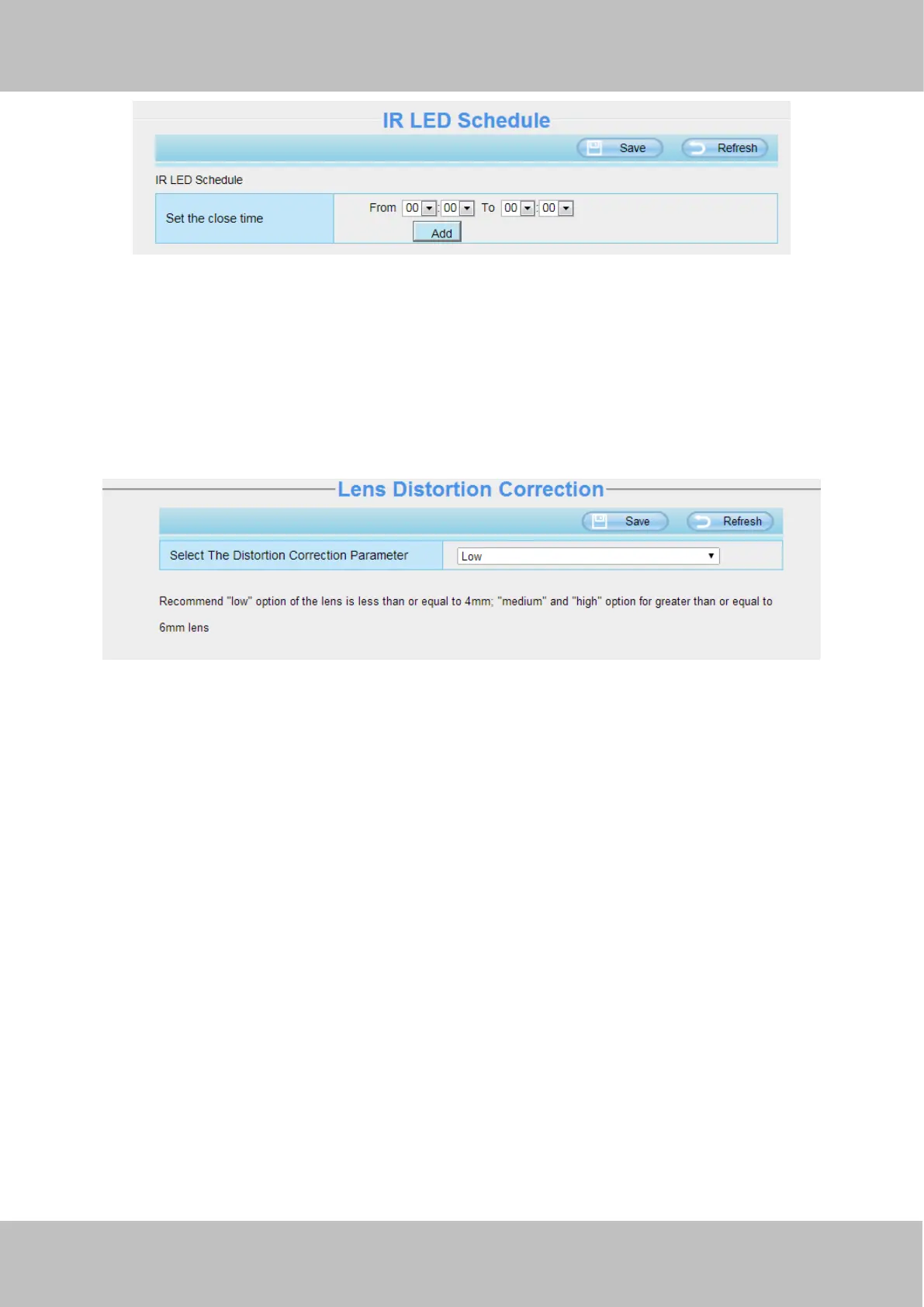 On this page you can set the distortion correction. There are three options: Low, Medium, High.