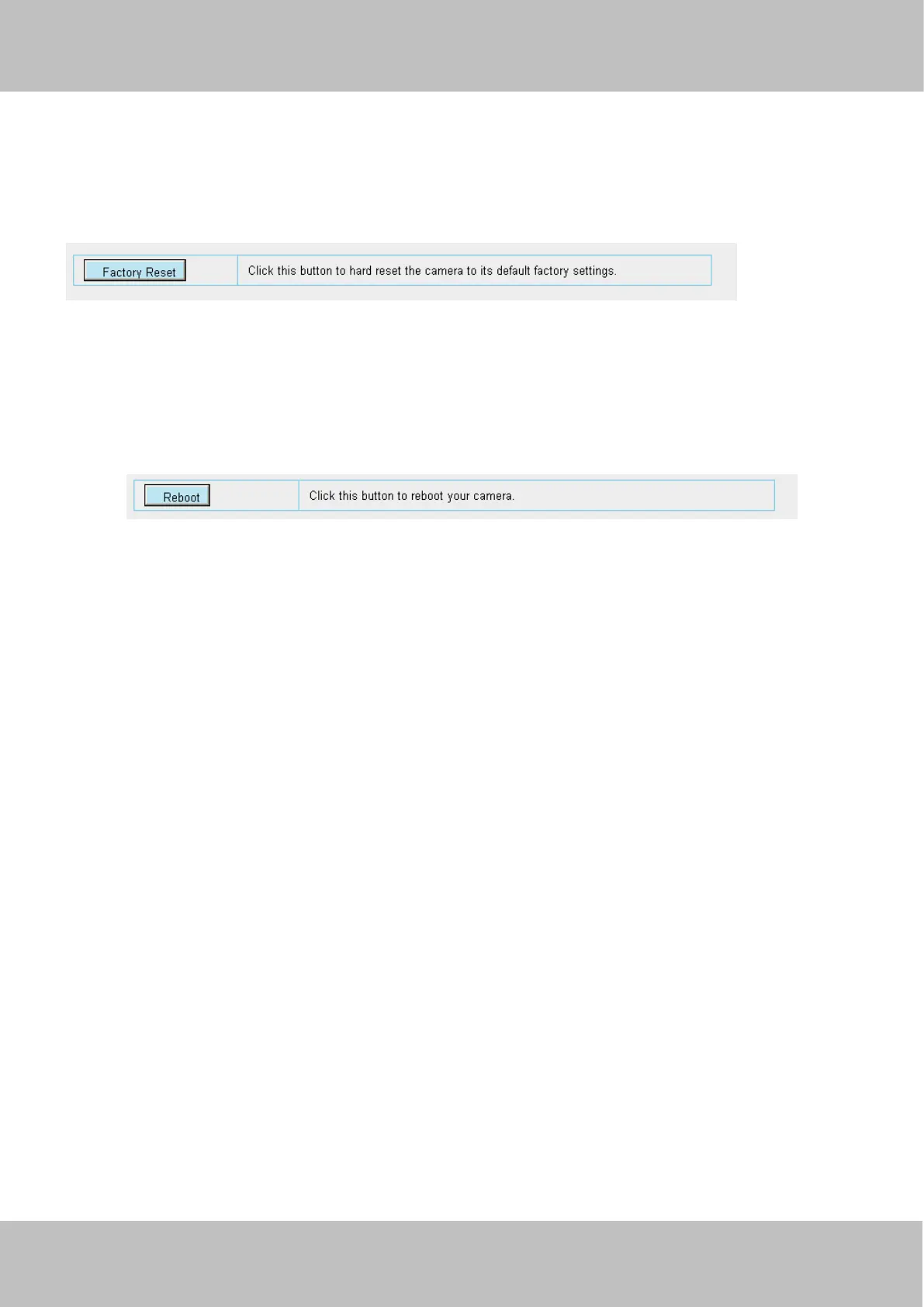 Click Reboot to reboot the camera. This is similar to unplugging the power to the camera.