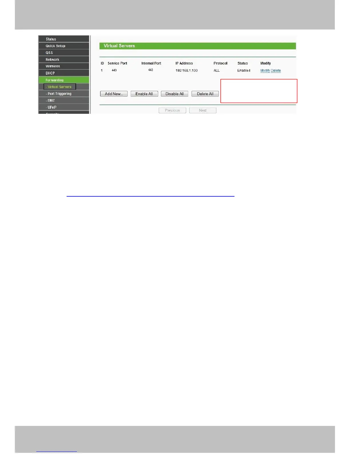 Port Forwarding setup.