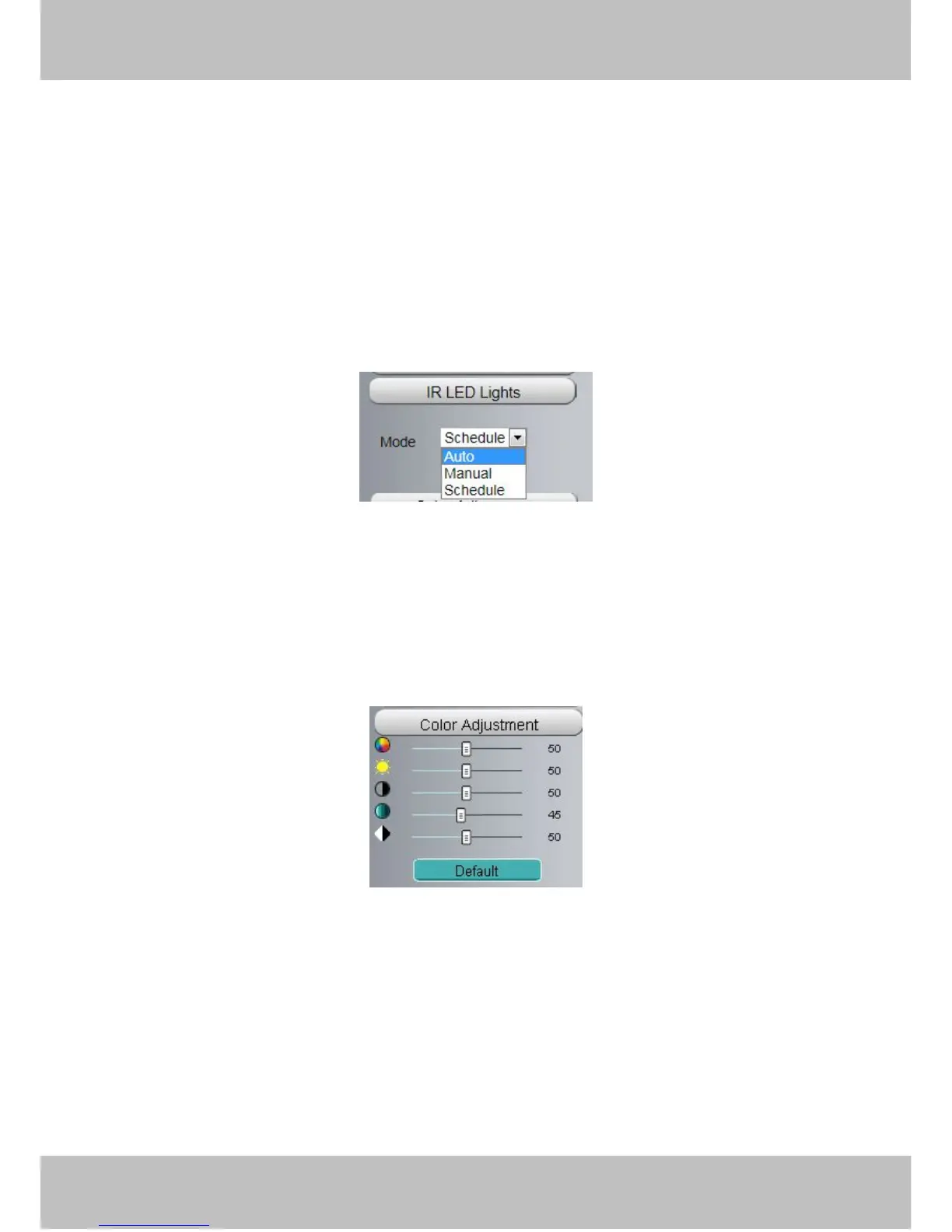 led lights schedule time, please go to Settings→Video→IR LED Schedule page.