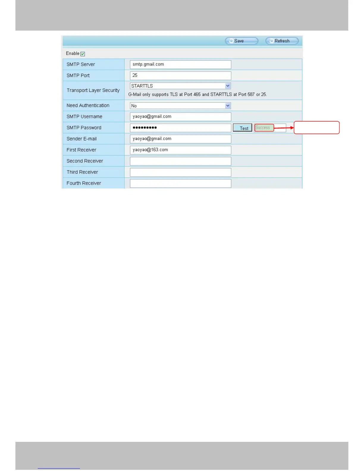 If the test success, you can see the Success behind the Test, at the same time the receivers will receive a test