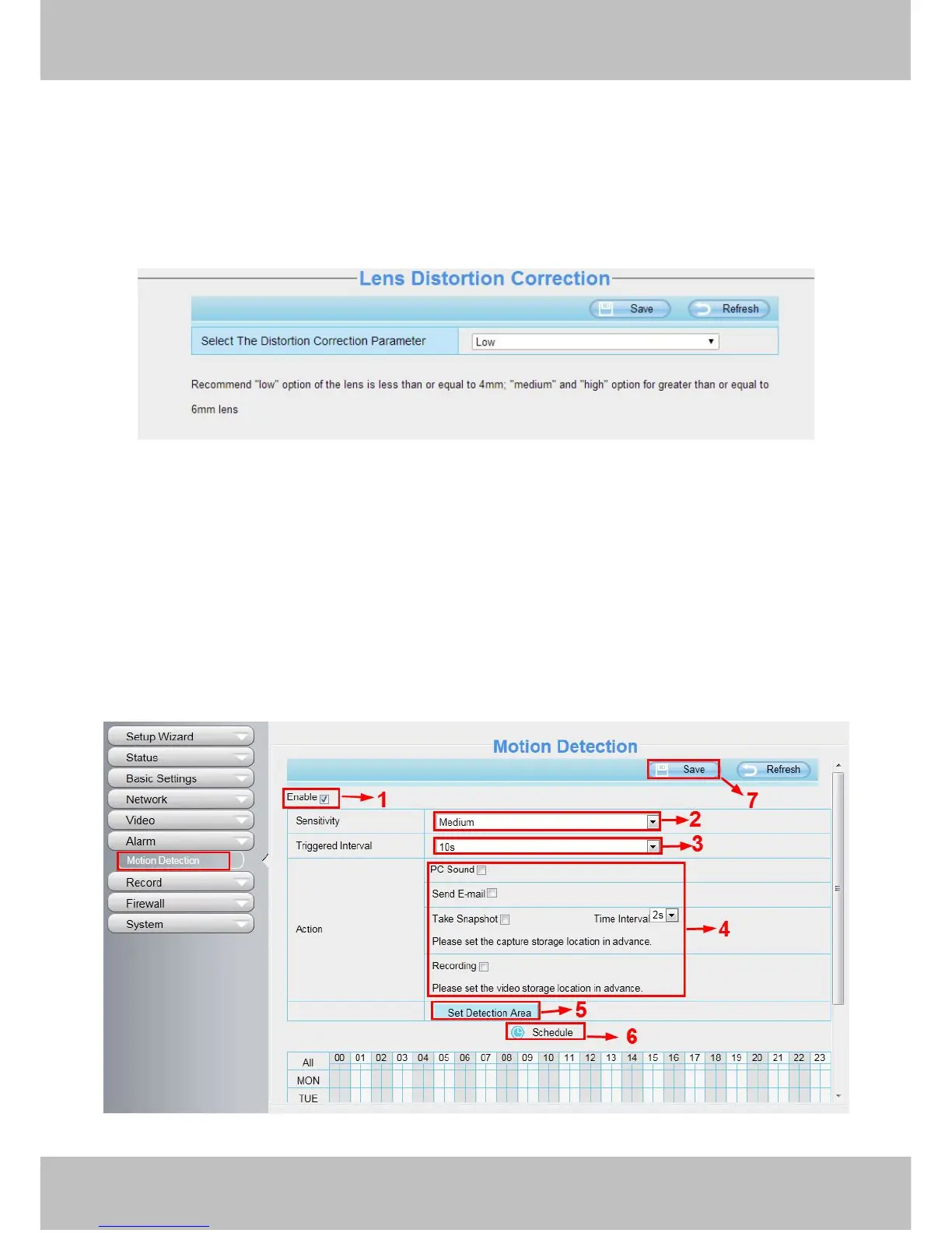 Foscam FI9803P - 4.5.5 Lens Distortion Correction; 4.6 Alarm; Motion Detection
